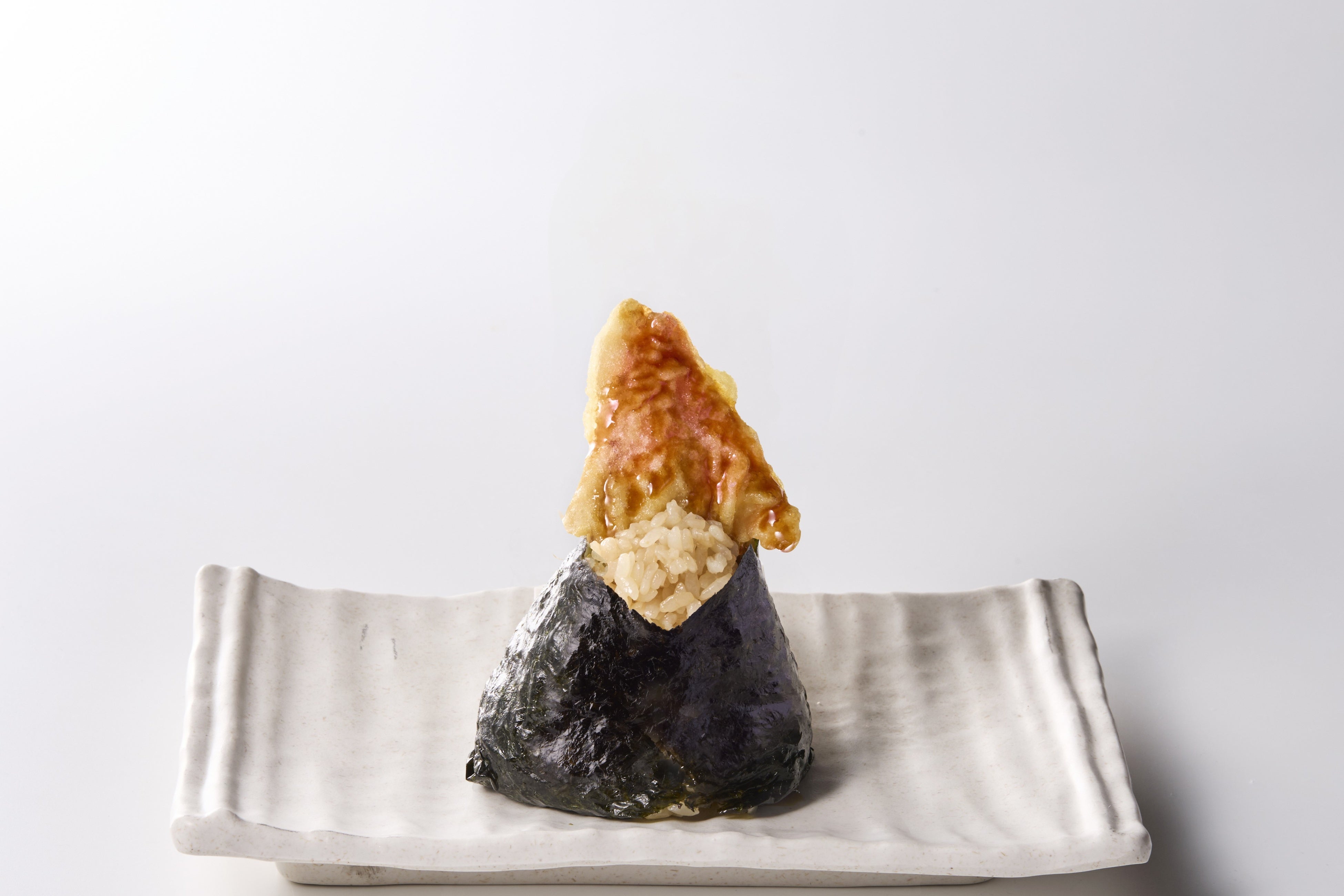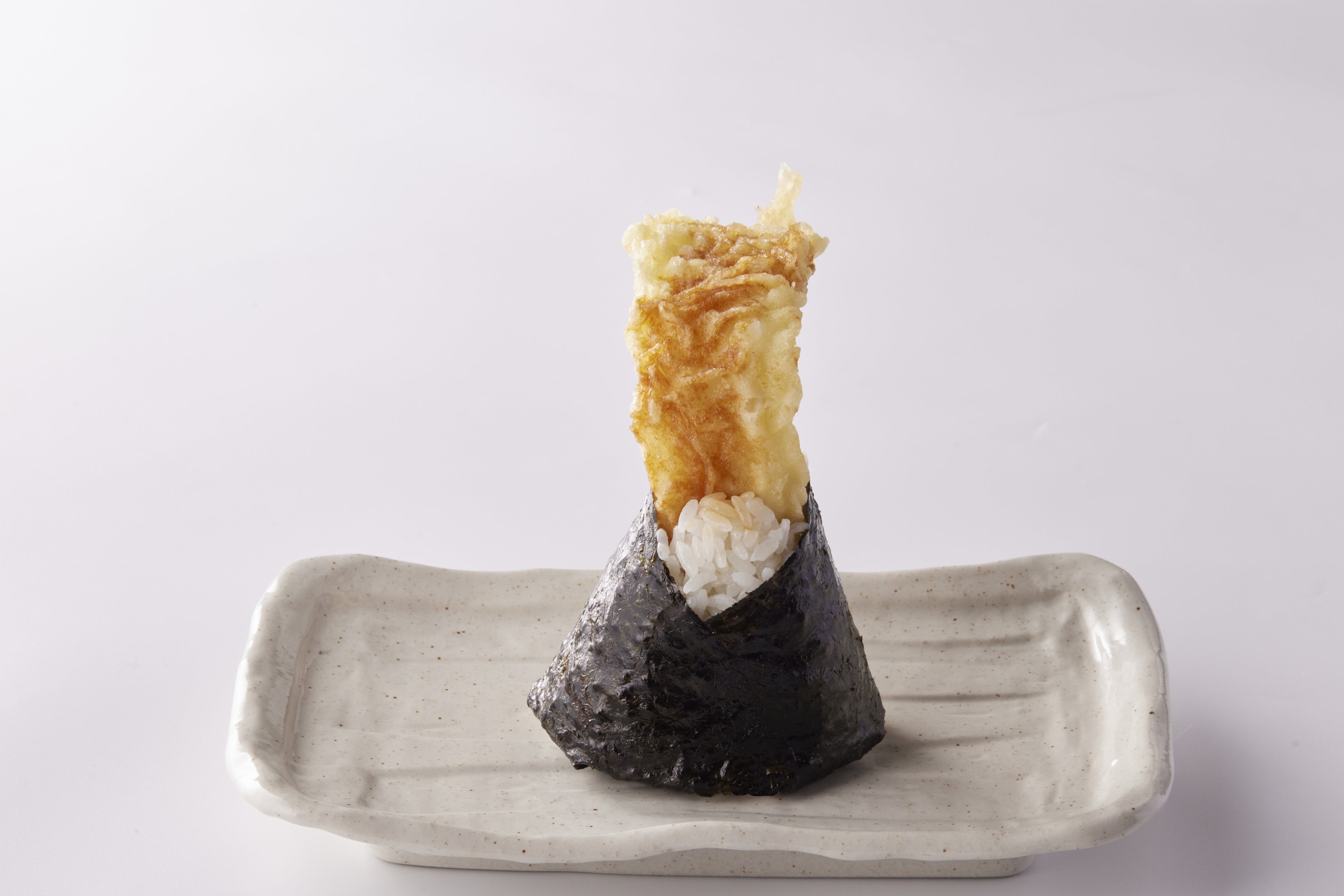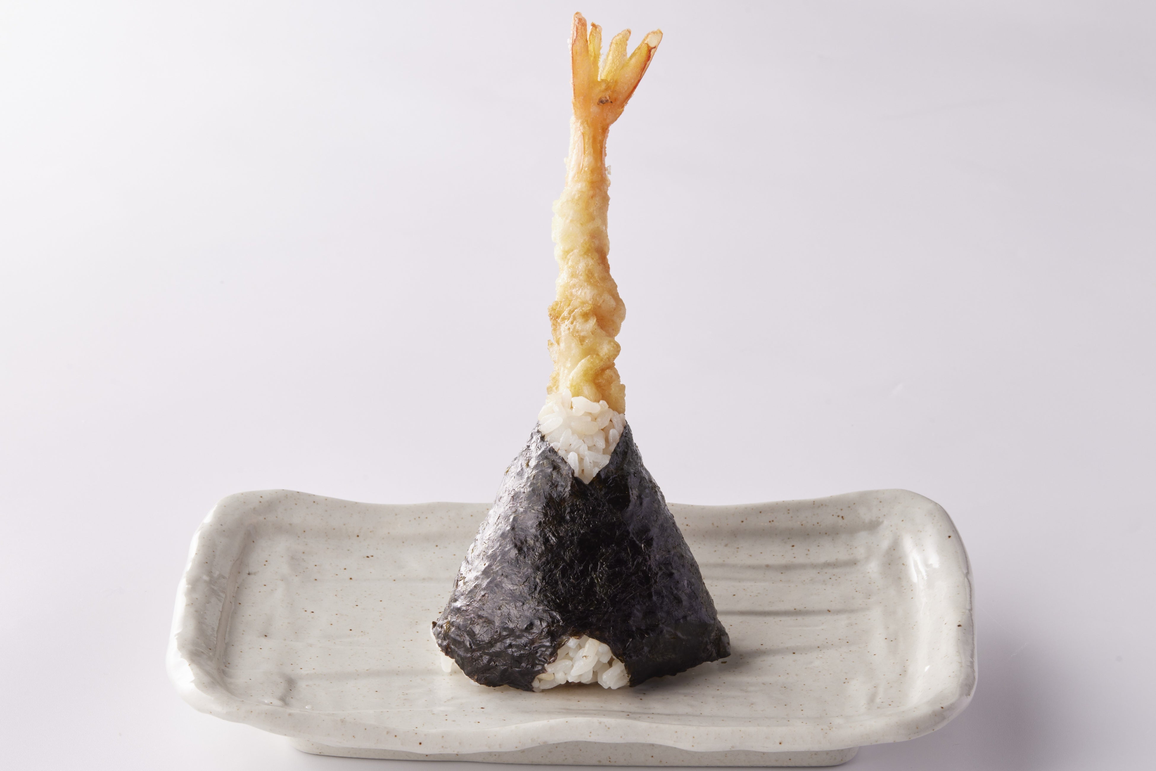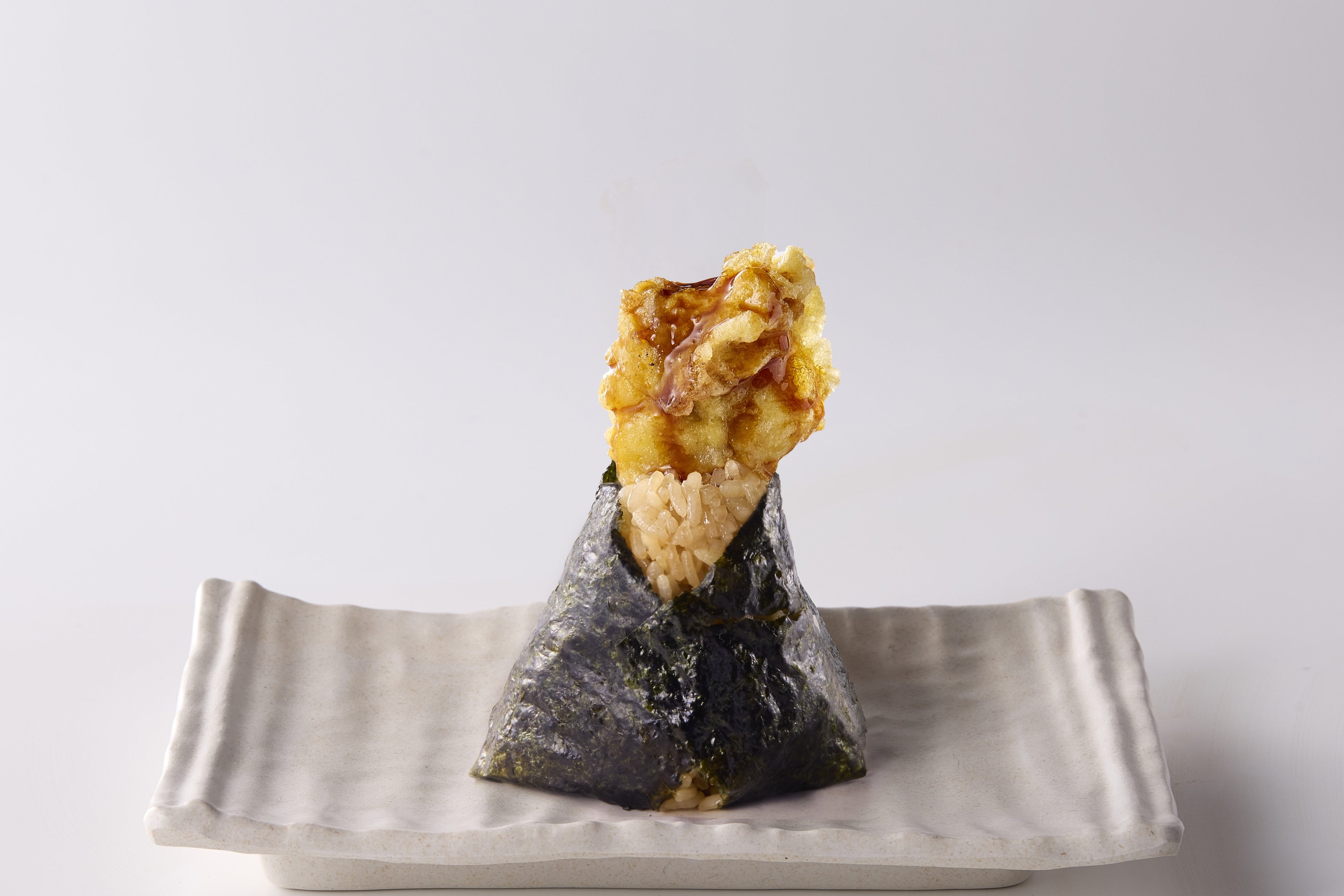 海老天に自家製のタルタルを合わせた、旨みとクリーミーさが口いっぱいに広がるおむすびです。