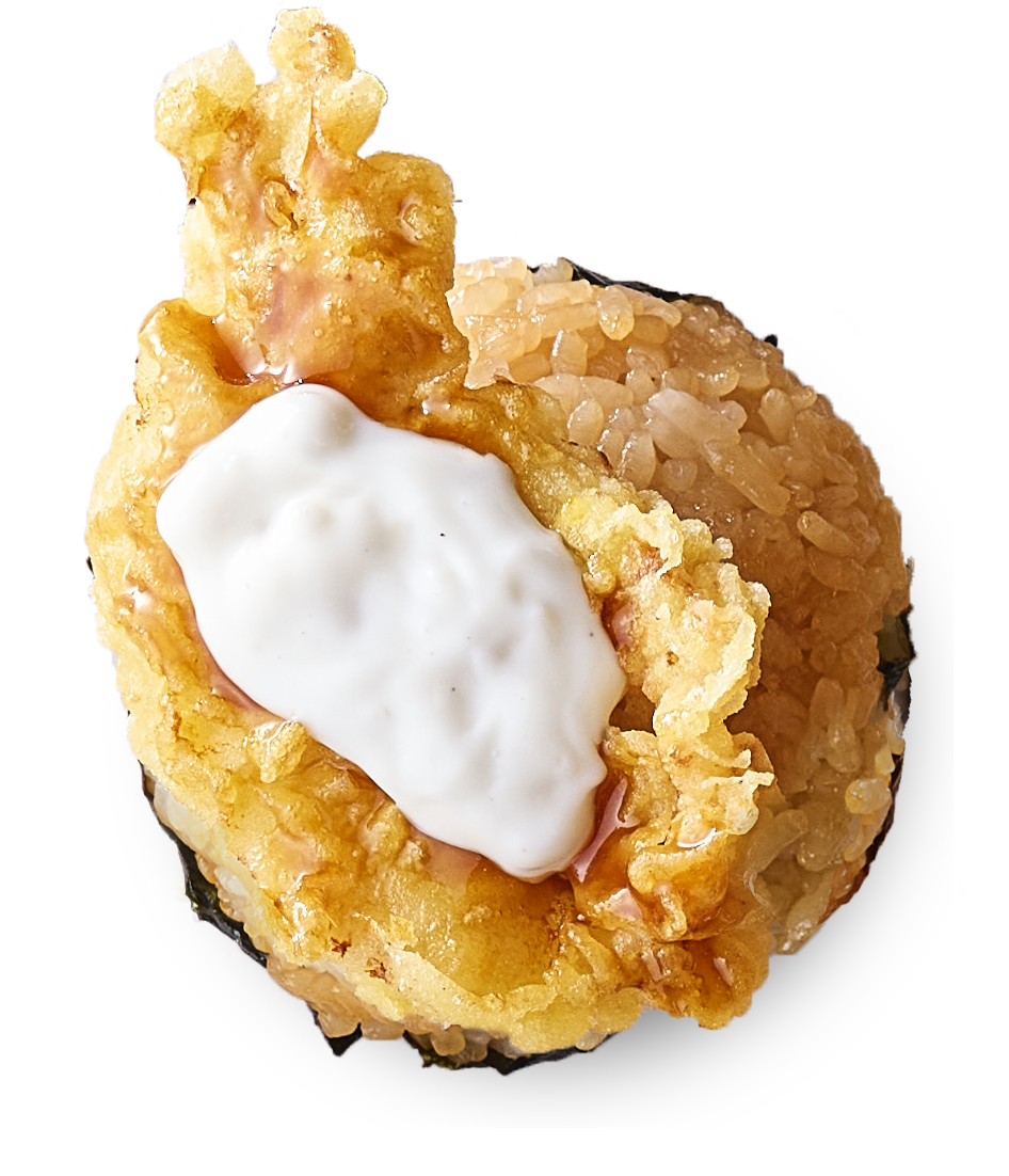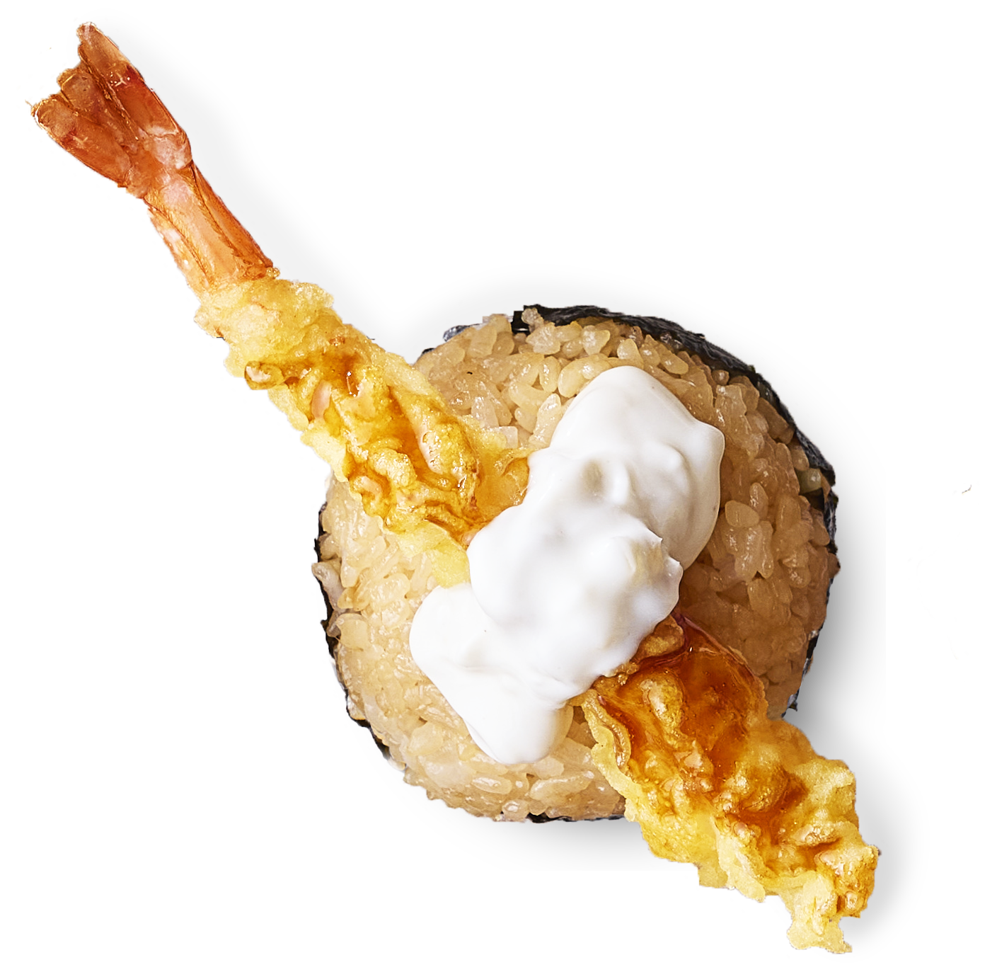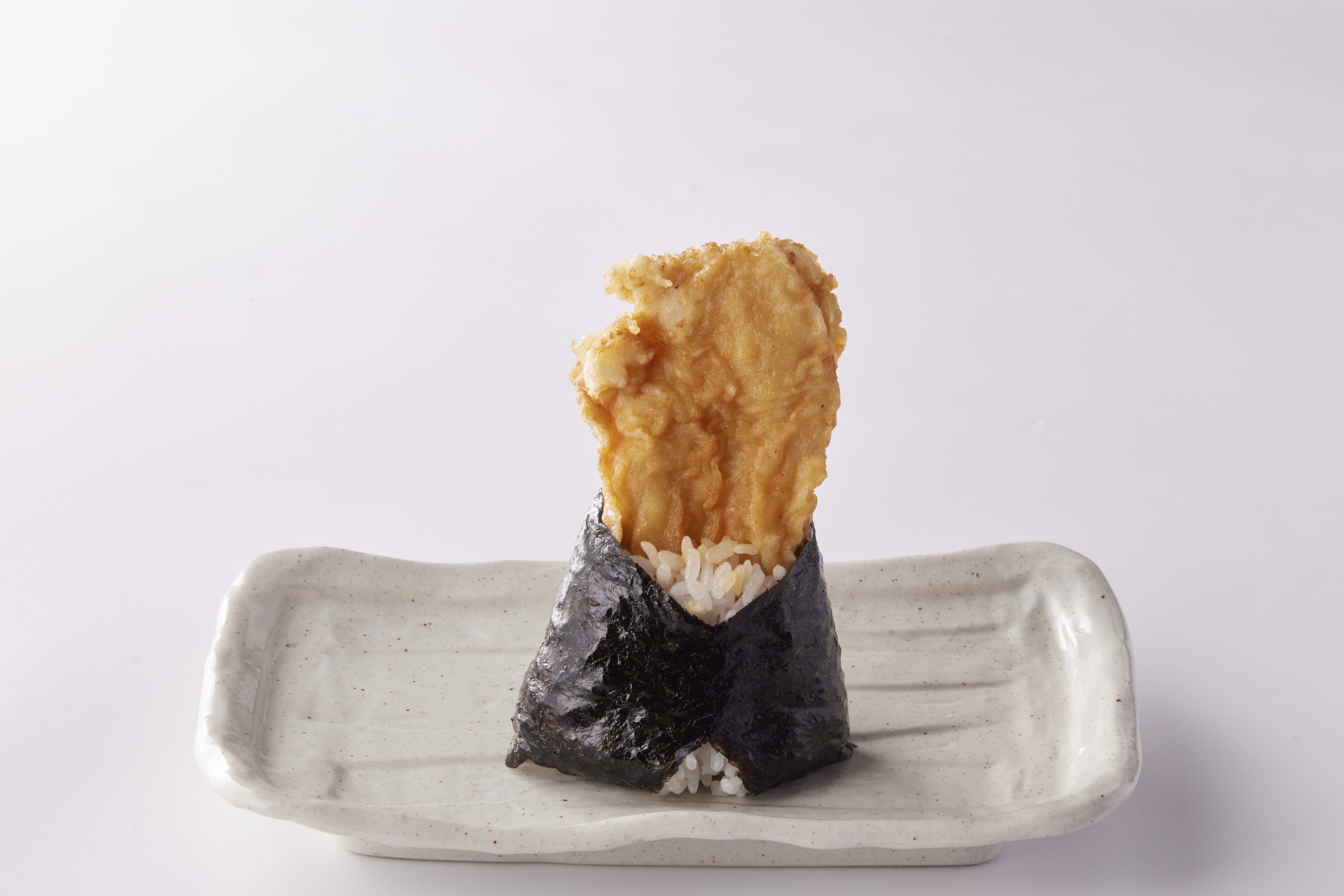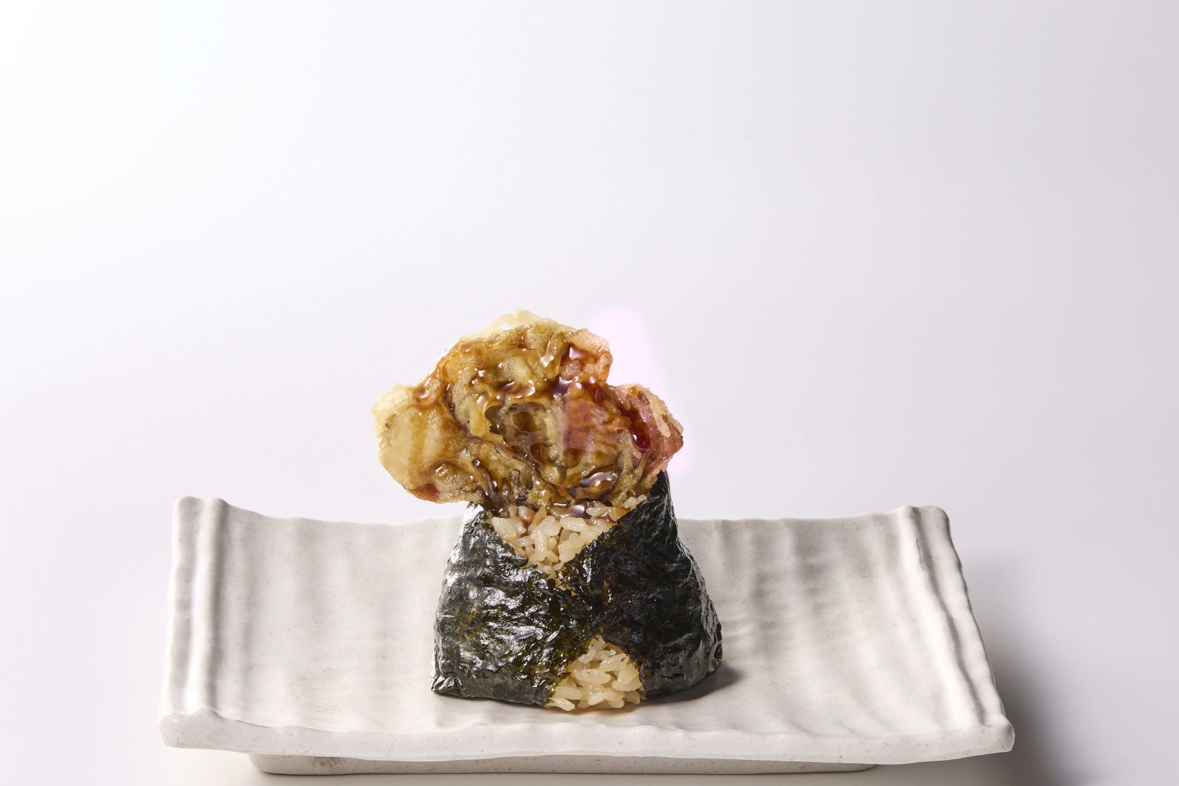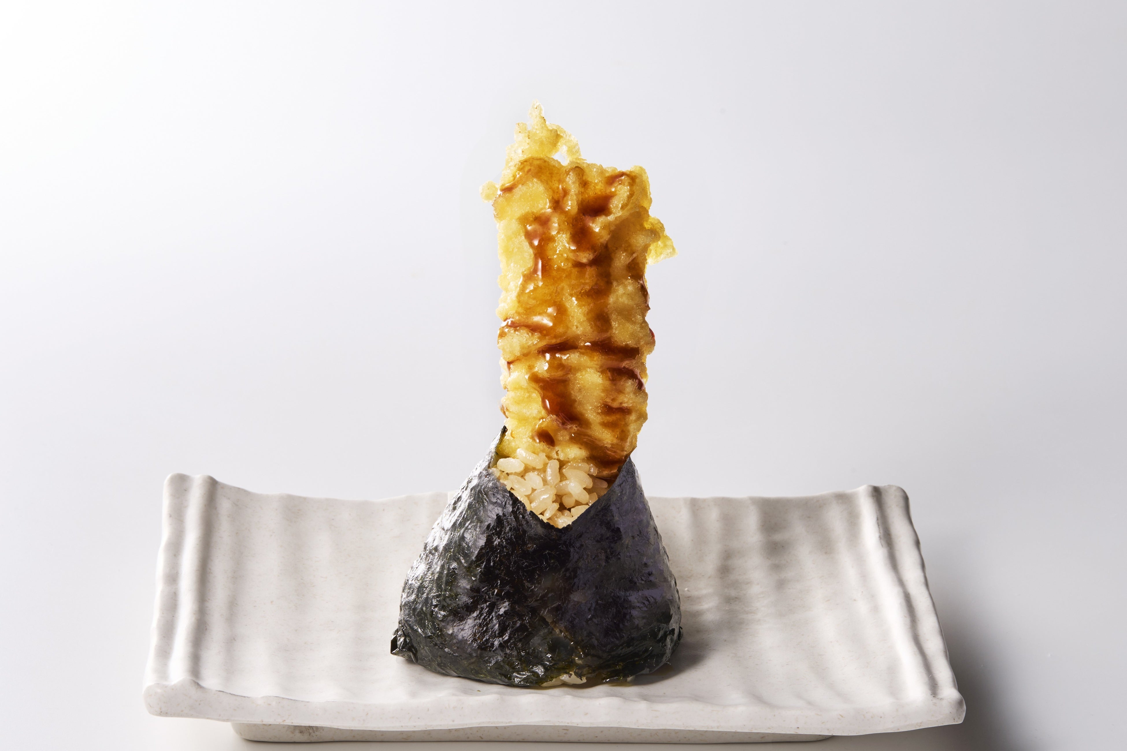 海老天に自家製のタルタルを合わせた、旨みとクリーミーさが口いっぱいに広がるおむすびです。