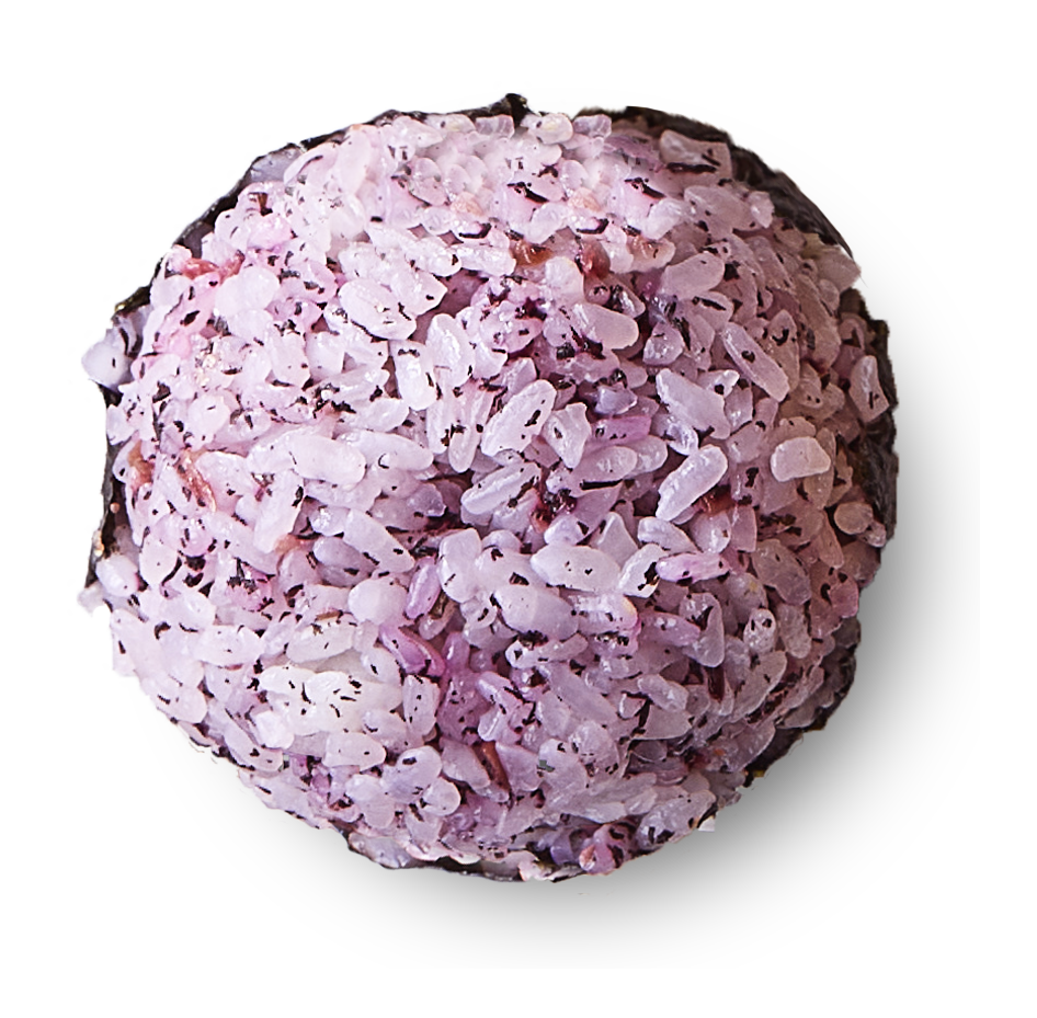 赤シソご飯に梅かつおを入れることで、梅の酸味と赤シソの爽快な香り、かつおの旨みが広がるおむすびです。