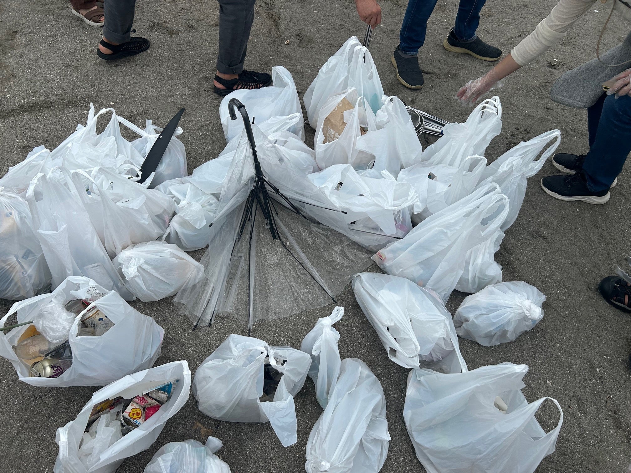 当初はマイクロプラスチックをビーチレジャーアイテムの破片など、時間をかけても自然に戻らないゴミを目的に海岸でのごみ拾いを中心に行う予定でしたが、スタート直後の逗子駅ロータリー周辺の時点でペットボトル、たばこの吸い殻、お菓子の袋や飲み残したままのお酒の缶、空き瓶などがポイ捨てされており中には海岸に着く前にごみ袋がずっしり重くなっている参加者も見受けられました。