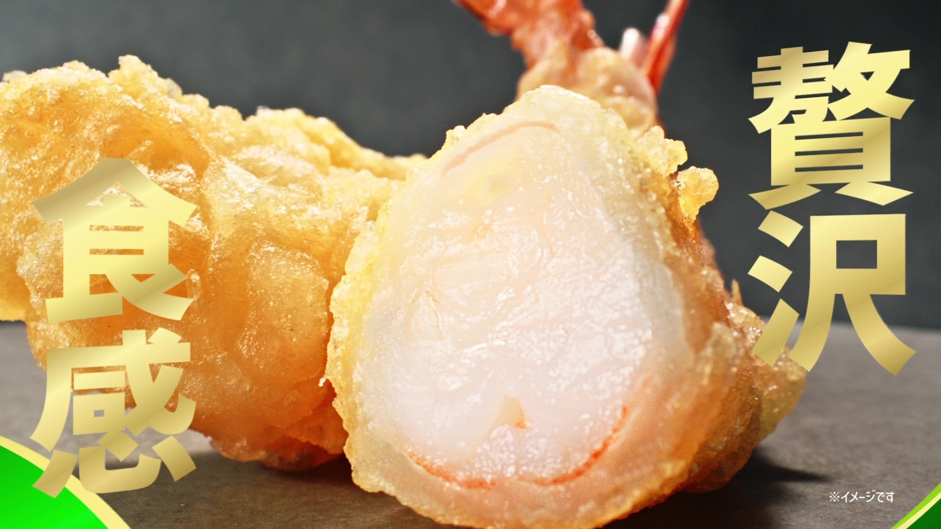 『大海老天のり弁当』の美味しさポイントである“大海老天”を躍動感のあるシズルとアニメーションを組み合わせることで、明るく、元気に表現しました。『大海老天のり弁当』は、ごはんの上におかか昆布とのりをのせ、大きなちくわの天ぷらと“大海老天”を2尾盛り付けた、食べ応えのあるメニューです。