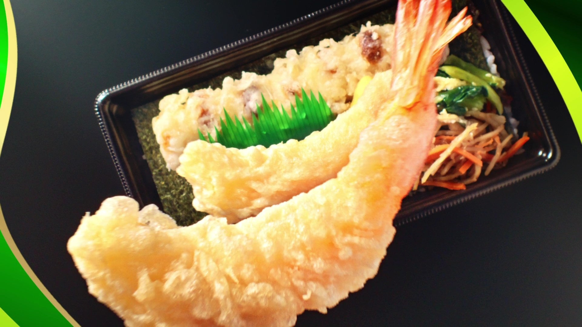 『大海老天のり弁当』の美味しさを躍動感のあるシズルとアニメーションを組み合わせることで、明るく、元気に表現しました。