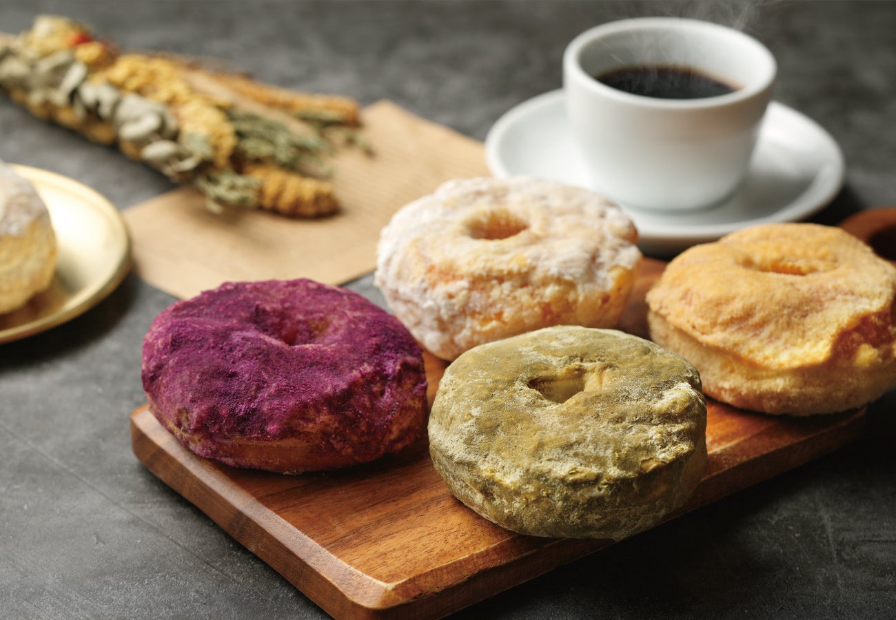台湾ドーナツの外はさくっと、中はふわっと軽い食感に仕上げ、ジャスミンや紫芋など台湾らしい香りをまとわせました。