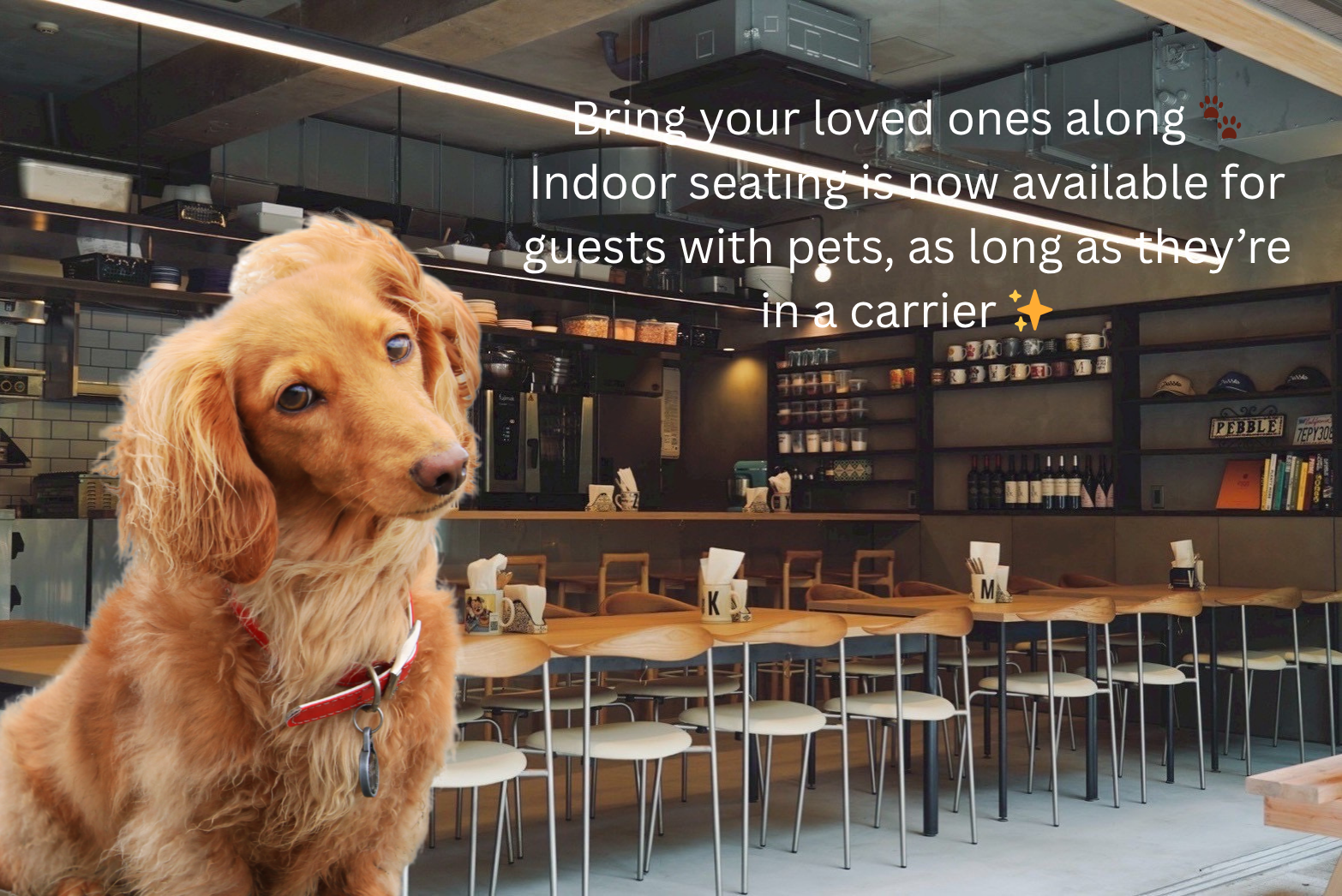 Pebble Hiroo Terrace では、テラス席はもちろん、店内のお席も キャリーケースに入れていただければ愛犬とご一緒にお食事いただけます。
