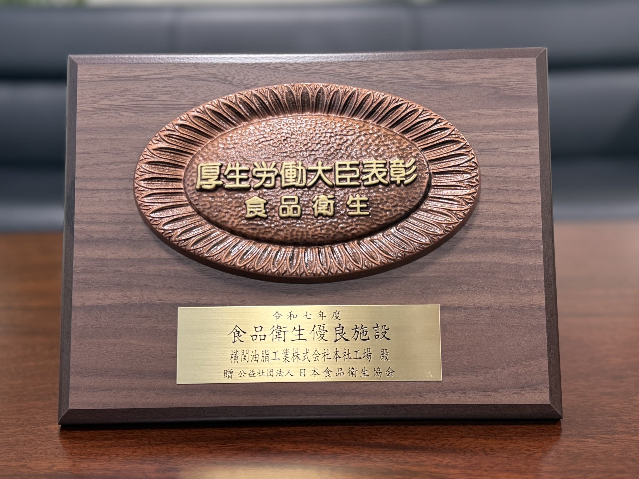 横関油脂工業株式会社は、10月16日(木)に開催された令和7年度「食品衛生事業功労者厚生労働大臣表彰」において、食品衛生の向上に顕著な功績があった施設として、厚生労働省より「食品衛生優良施設」として表彰されましたことをご報告いたします。