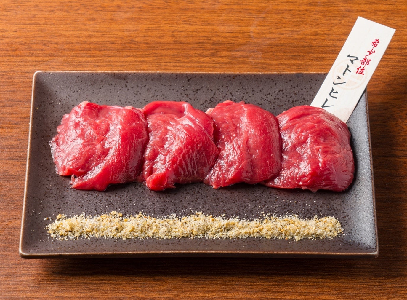 マトンは生後24ヶ月以上の成羊で、深い旨味と弾力ある食感を楽しめます。中でもヒレは背骨の内側にある細長い筋肉を指し、脂肪や筋が少なく柔らかい肉質が特徴です。1頭から約150g程度とごくわずかしか取れないため、最高級部位の一つと言われています。希少性が高く、ラムちゃんでは常時ご提供していない特別メニューですが、“いい肉の日”に美味しいお肉をお得に楽しんでいただきたく、数量限定でご用意しました。
