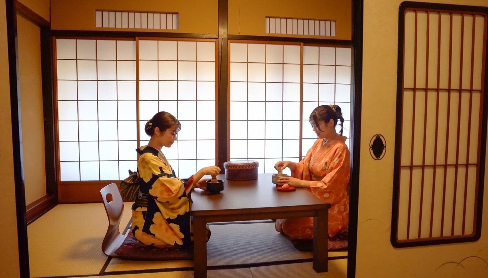 宿「古都とき」では、お客様がチェックイン時に町家の歴史や暮らしの物語を丁寧に説明することで、建物が歩んできた時間を感じていただきます。客室には江戸時代を想起させる小物等を配置し、セルフ方式の茶道体験も可能です。室内は当時の雰囲気を残した設えとなっており、まるで時間旅行をするような没入感を提供しています。