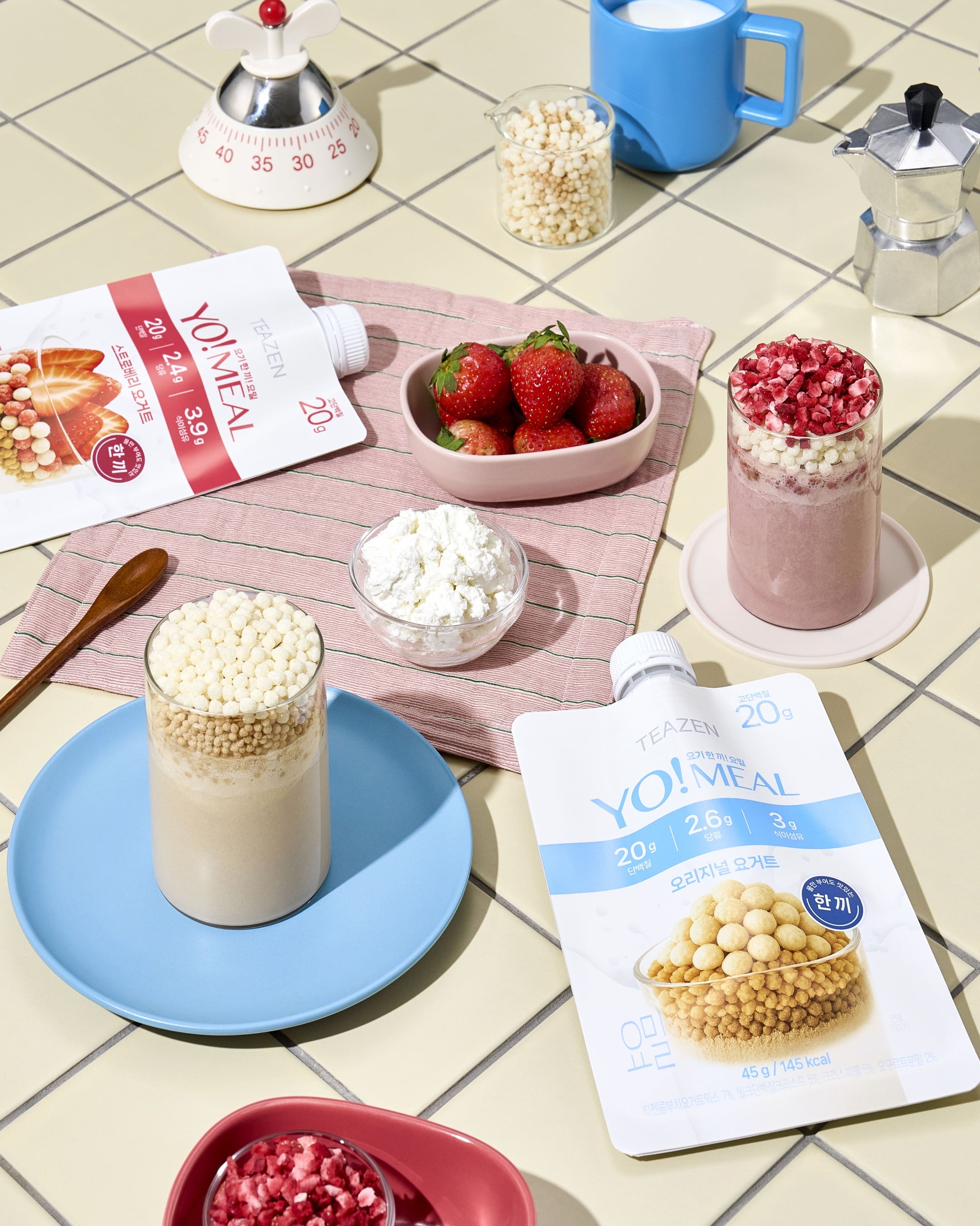 今回発売された「TEAZEN ヨミール」は、オリジナルヨーグルト味とストロベリーヨーグルト味の2種類。オリジナルヨーグルトは濃厚でさっぱりとした地中海風ギリシャヨーグルトの味わい、ストロベリー味はフリーズドライ苺を加えた爽やかな風味が特徴。また、噛み応えのあるトッピングが加わり、満足感のある食感も楽しめます。