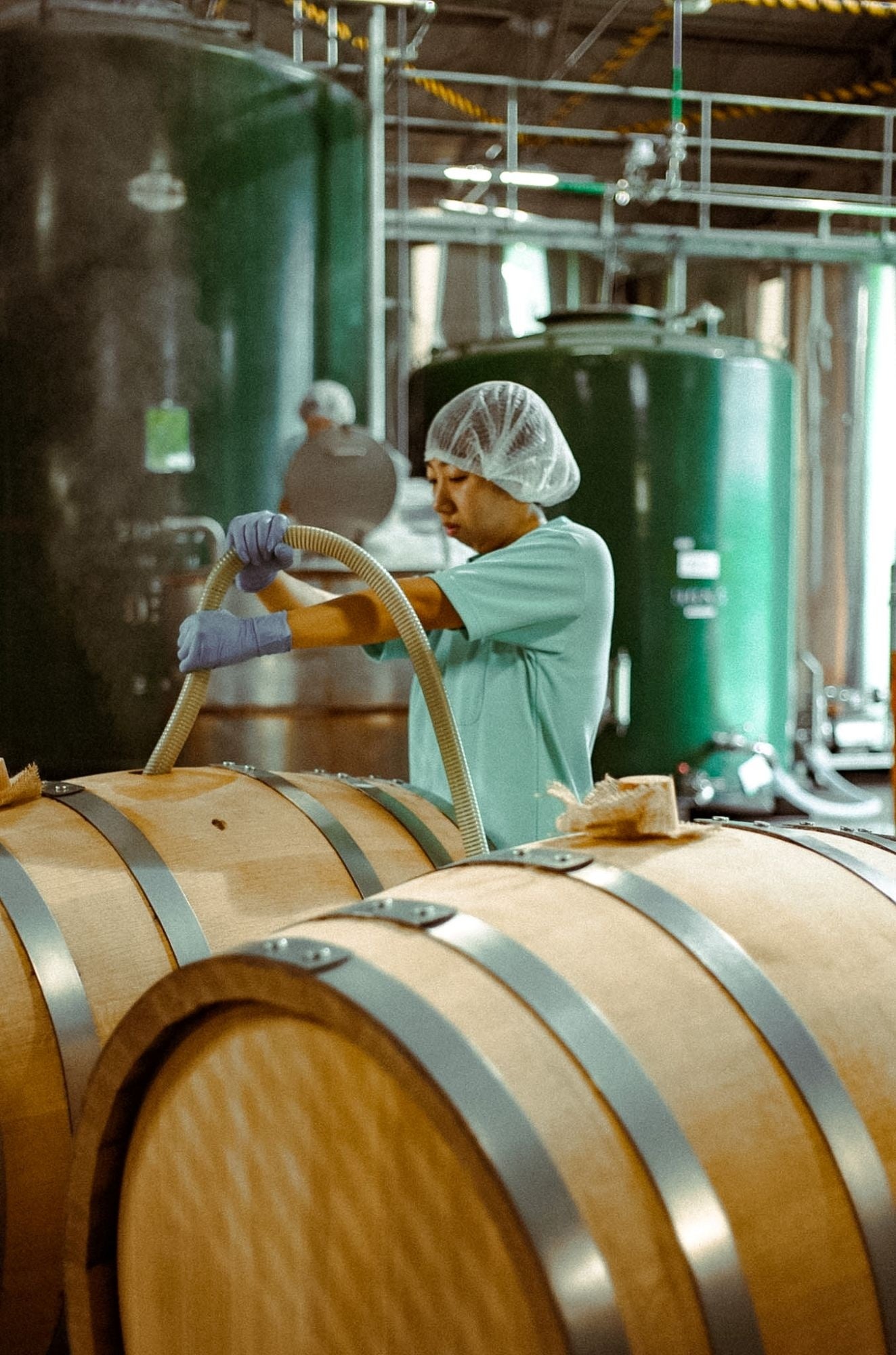 こうして選んだホワイトオークと国産杉を組み合わせと、直火によるチャーリングを施したオリジナル新樽を製作。バニラやカラメルを思わせる芳香を引き出し、ウイスキーのような重厚さと日本酒の繊細さが共存する、新しい香りの世界を実現しました。