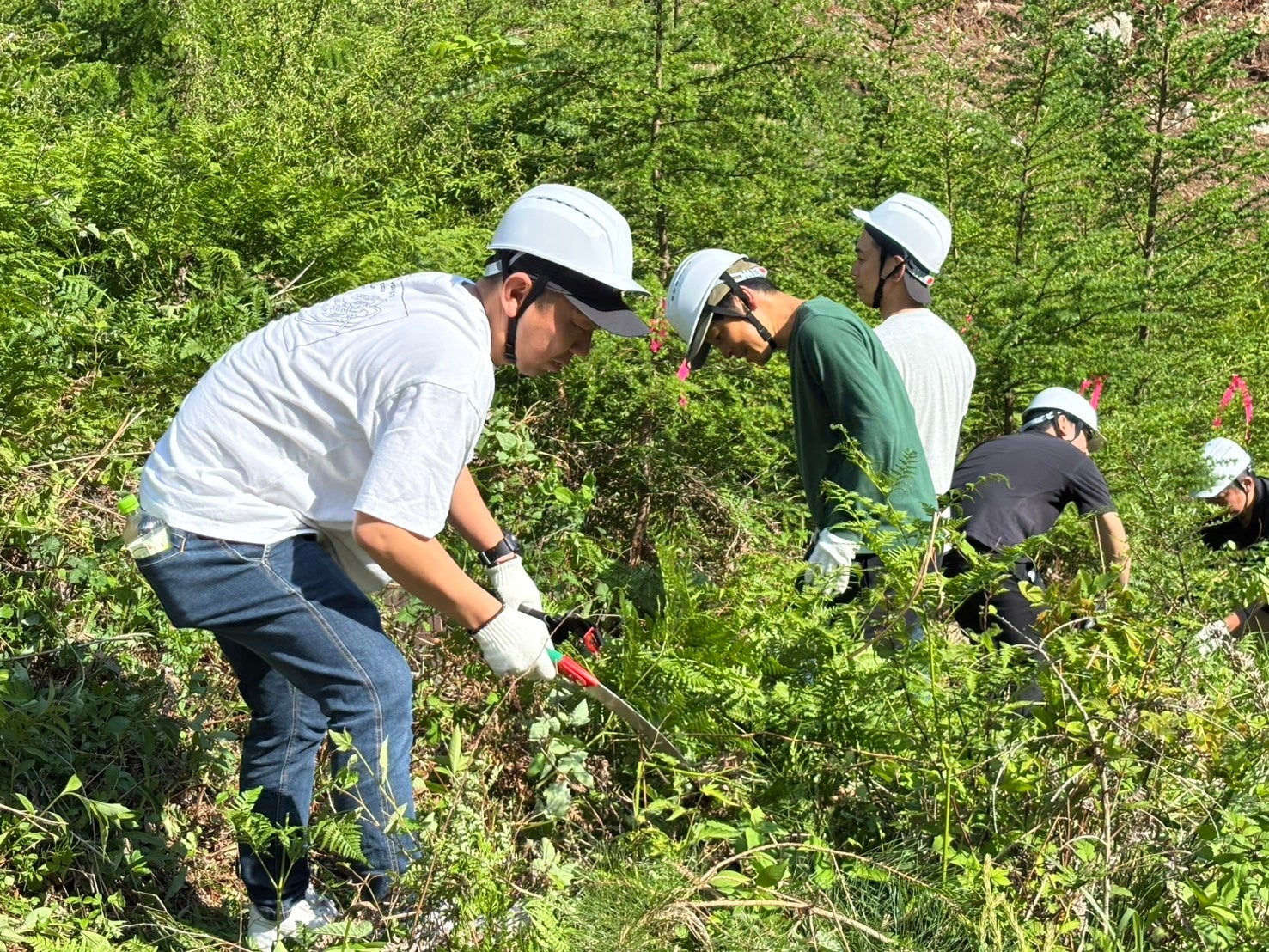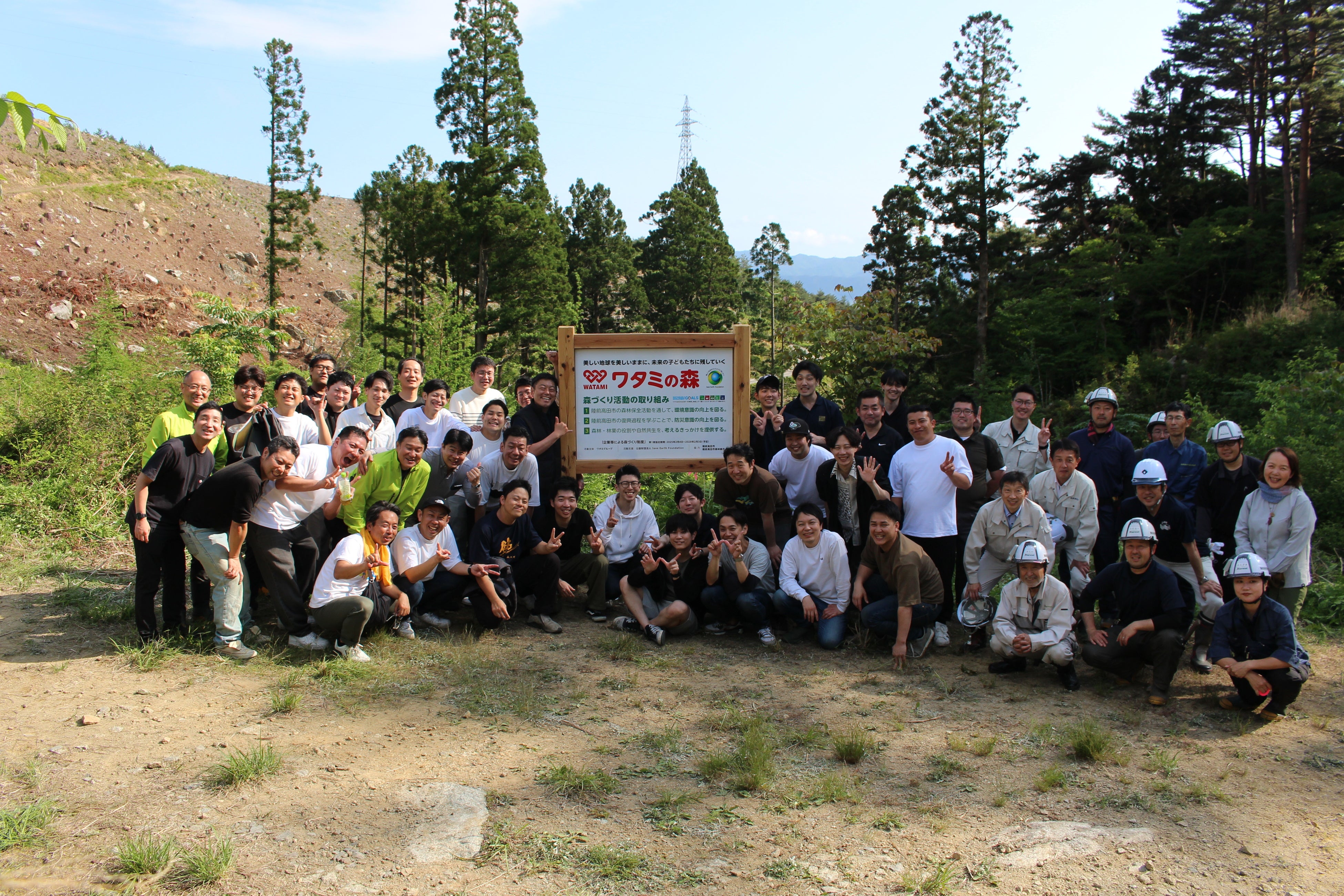 岩手県陸前高田市の「ワタミの森」にて、初となる「森開き式」と森林再生活動を実施しました。第1回活動では、外食事業の居酒屋店長など38名が参加し、雑草の下刈りなど行いました。
