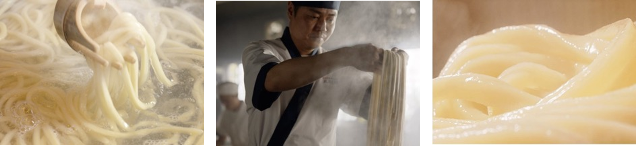 「ここのうどんは、生きている。」をブランドメッセージに掲げ、日々、食の感動体験を探求し手づくりの「おいしいうどん」をお客さまに提供しています。私たちは一軒一軒が製麺所であり、徹底的に鮮度にこだわり、国内800を超えるすべての店で、手間を惜しまず粉からうどんを日々つくり続けています。技と感性を磨いた「麺職人たち」が、100%国産の小麦粉を毎日打ち、その場で麺を切って、茹でて、つくりたてをお客さまに提供しているからこそ、独自のもちもちの食感とおいしさを守り続けることができているのです。海外でも「Marugame Udon」として、つくりたて、できたての、おいしいうどんと天ぷらを、自分のスタイルで楽しめる活気あふれる店として、毎日のように行列が見られるほどの人気を誇っています。