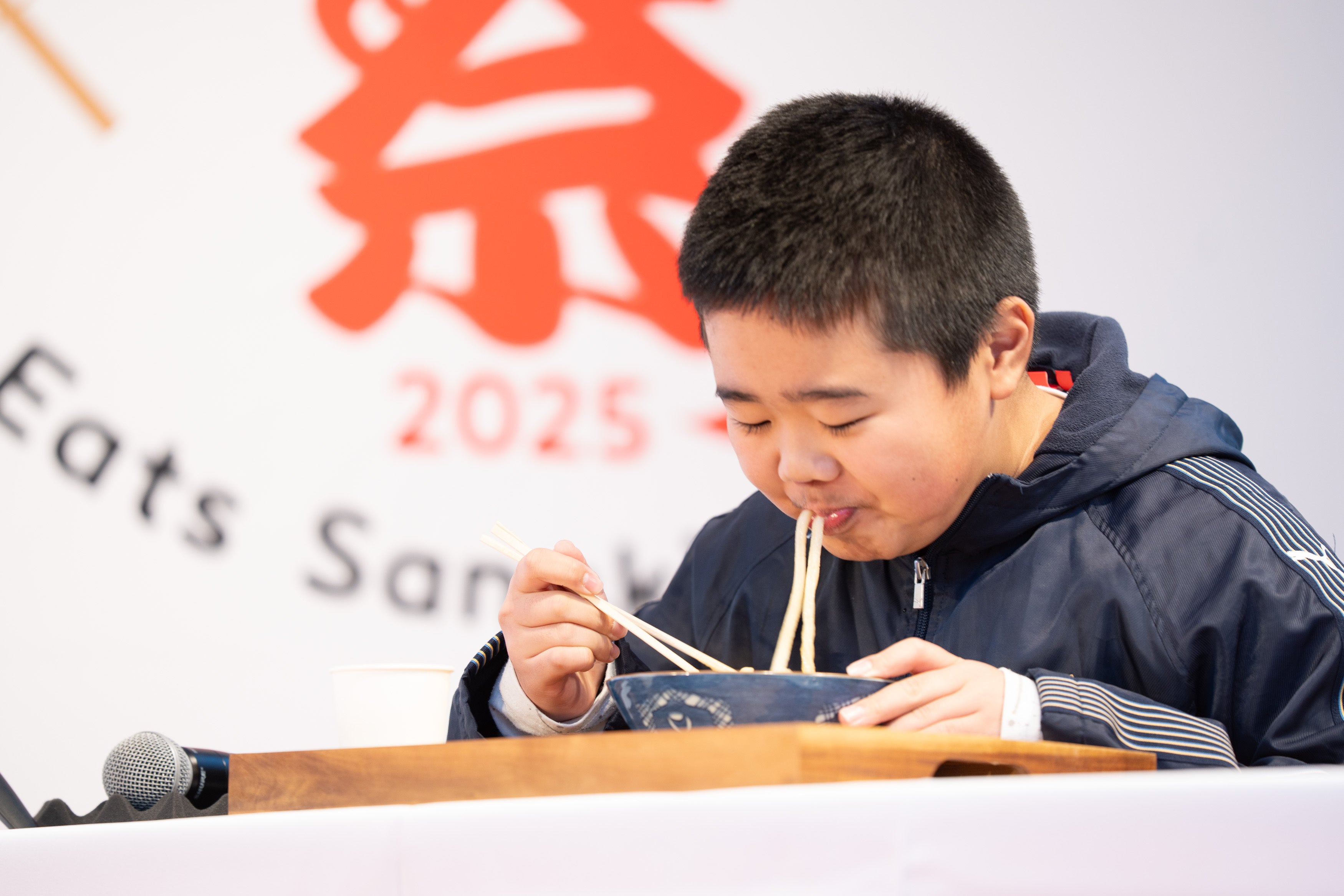 初日のハイライト③:県外からも多数の参加!讃岐うどんを一番おいしそうに食べる人を決める「丸亀食いっプリ!グランプリ」初代グランプリに輝いたのは香川県在住の小笠原 正之さんに決定!