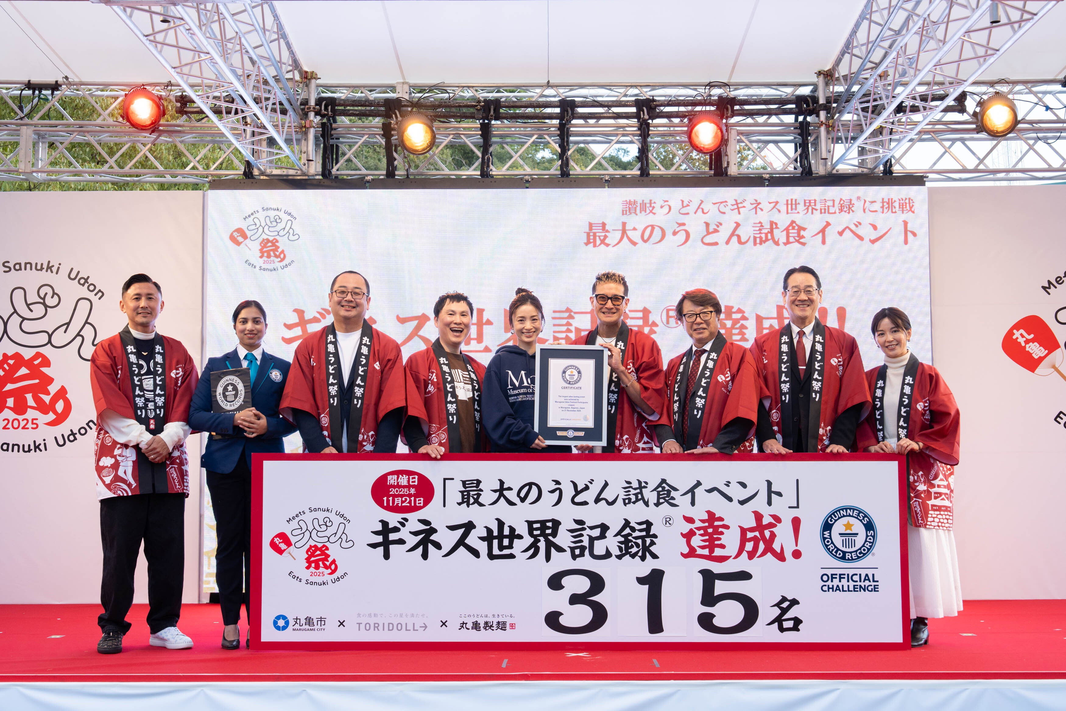 そして審査を終えた認定員から「315名が参加の最大のうどん試食イベント」としてギネス世界記録™に無事認定され、会場の盛り上がりは最高潮に。歓声と拍手の中ステージは閉幕いたしました。