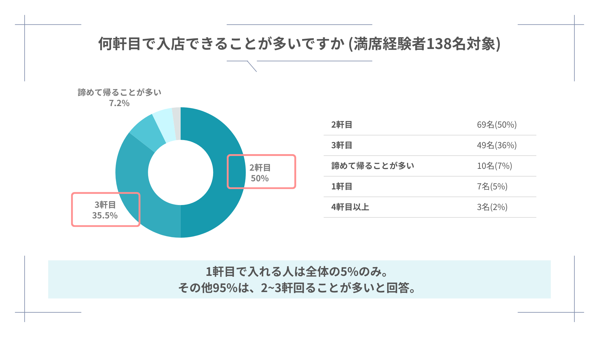 2. 平均2-3軒回ってようやく入店できる実態が明らかに