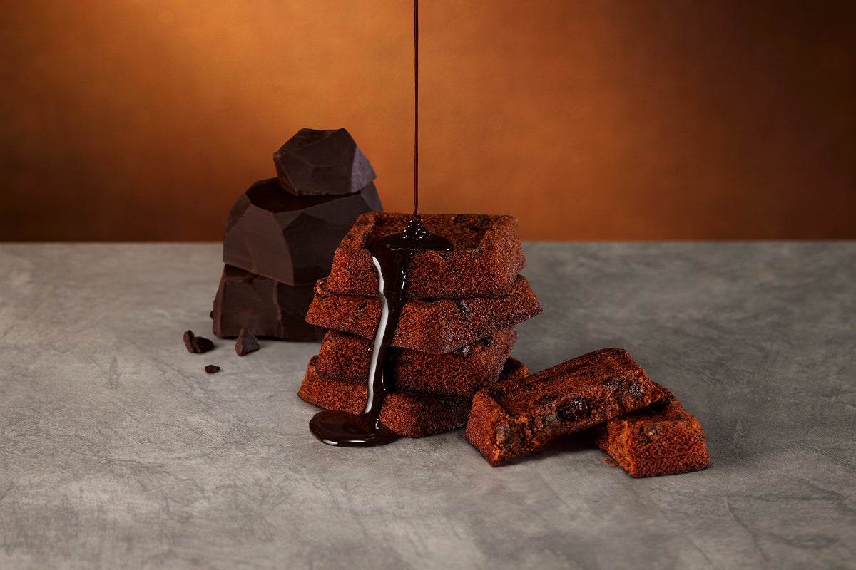 材料にもこだわり、フランス産生乳の発酵バター※とスペインでつくられたカカオ分66%のチョコレート、そしてカカオ分44%のチョコチップを使用して焼き上げました。発酵バターと2つのビターチョコレート、それぞれの美味しさを惜しみなく閉じ込めたこの時期にぴったりの商品です。