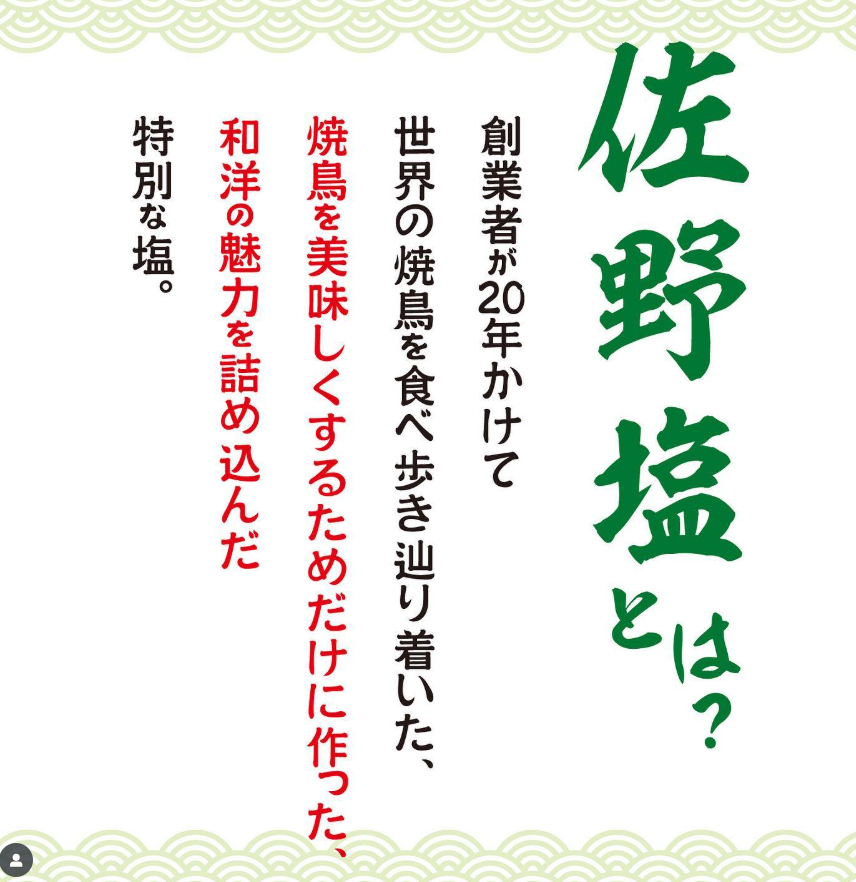 「佐野塩」は、焼鳥のためだけに開発された、他に類を見ないオリジナルブレンド塩です。