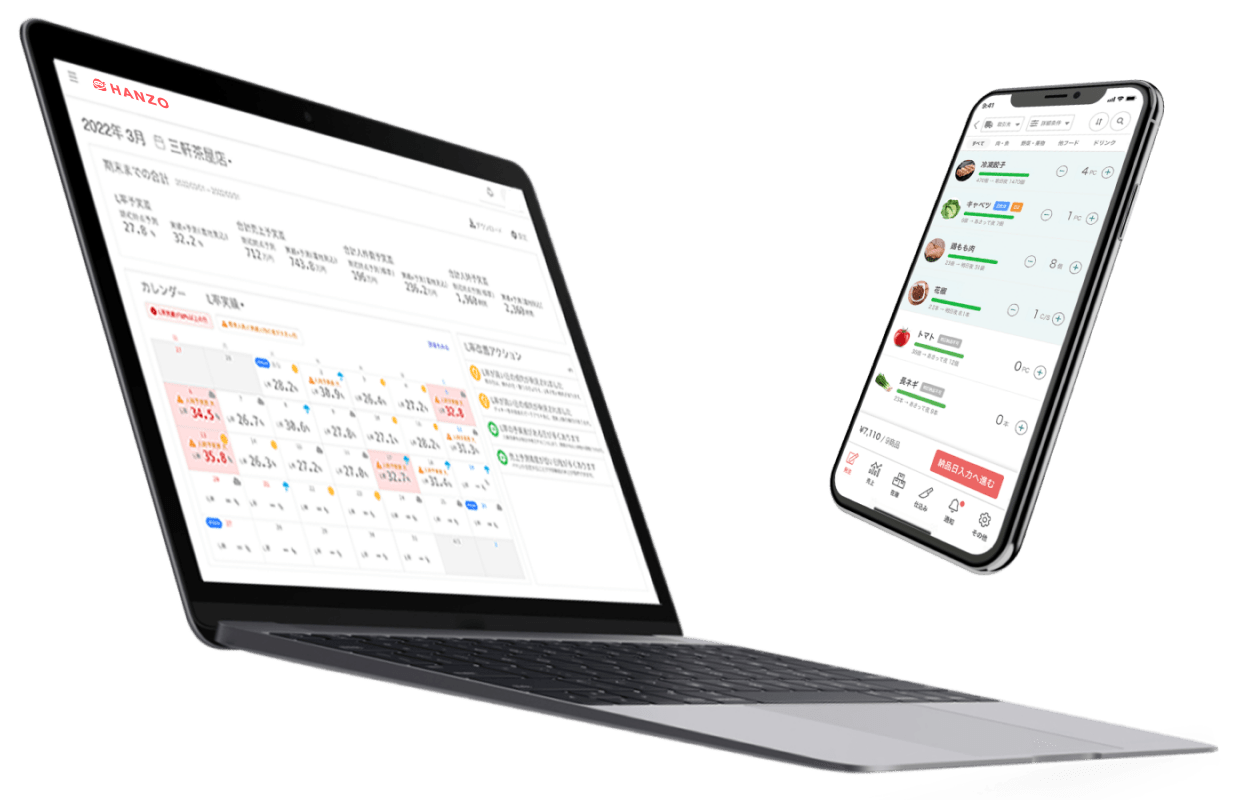 当社は飲食店における発注の自動化をAIで実現する「HANZO 自動発注」など飲食店向けに食材原価・人件費を最適化する「HANZO」シリーズを提案します。