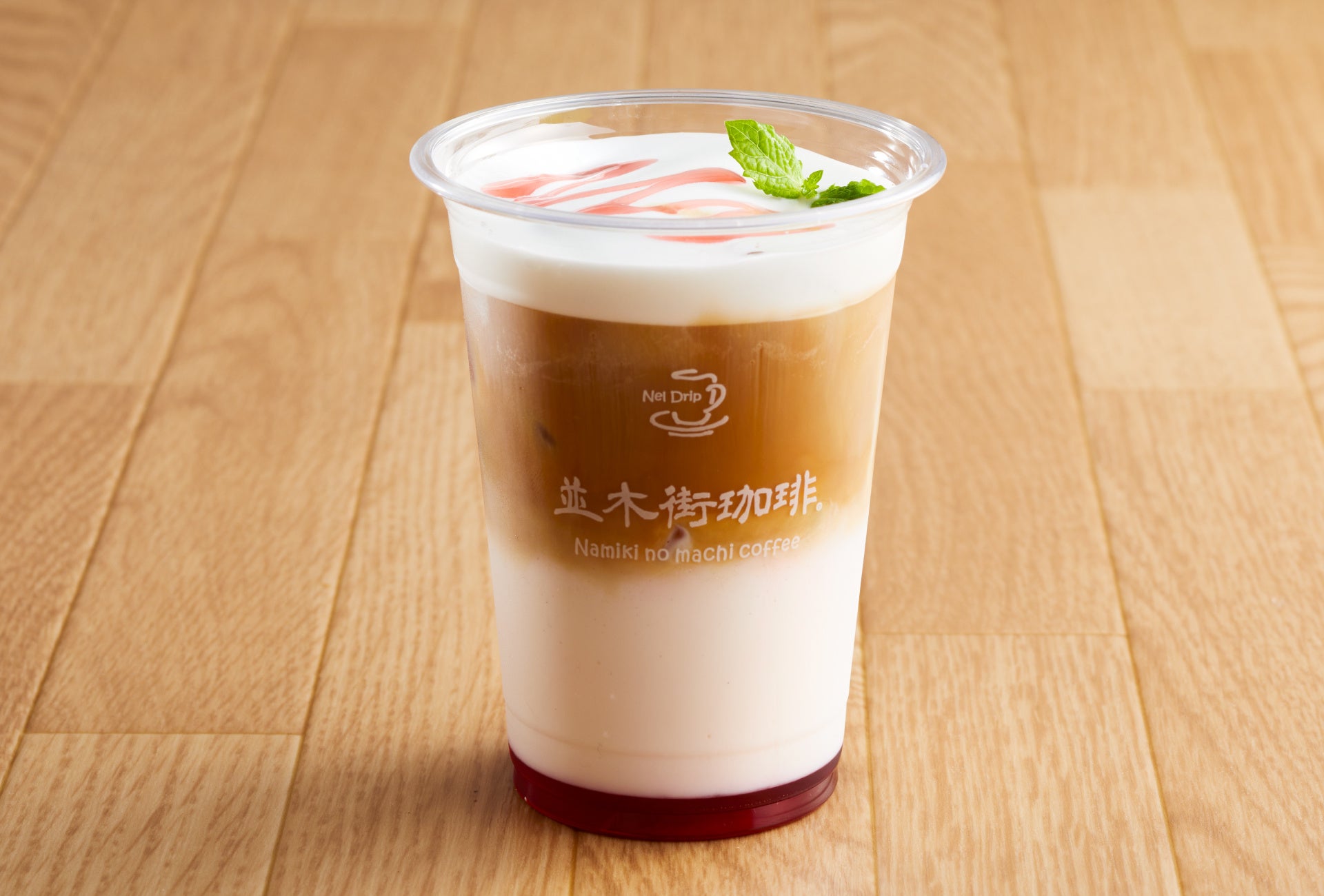 ほろ苦さの中にミルクの甘さといちご、ローズの香りが楽しめるラテ。