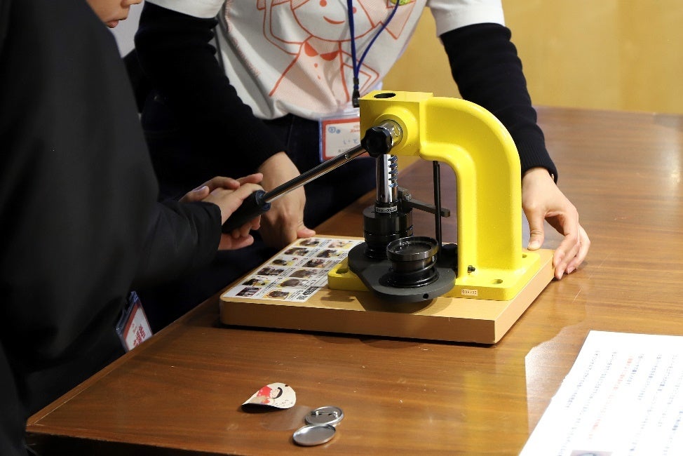 また、「オリジナル缶バッジ工房」では、ピュレグミやカンロ飴などの廃棄包材をアップサイクルした缶バッジ作りも体験。普段見ている商品のパッケージが缶バッジに変身すると驚きの声が上がりました。