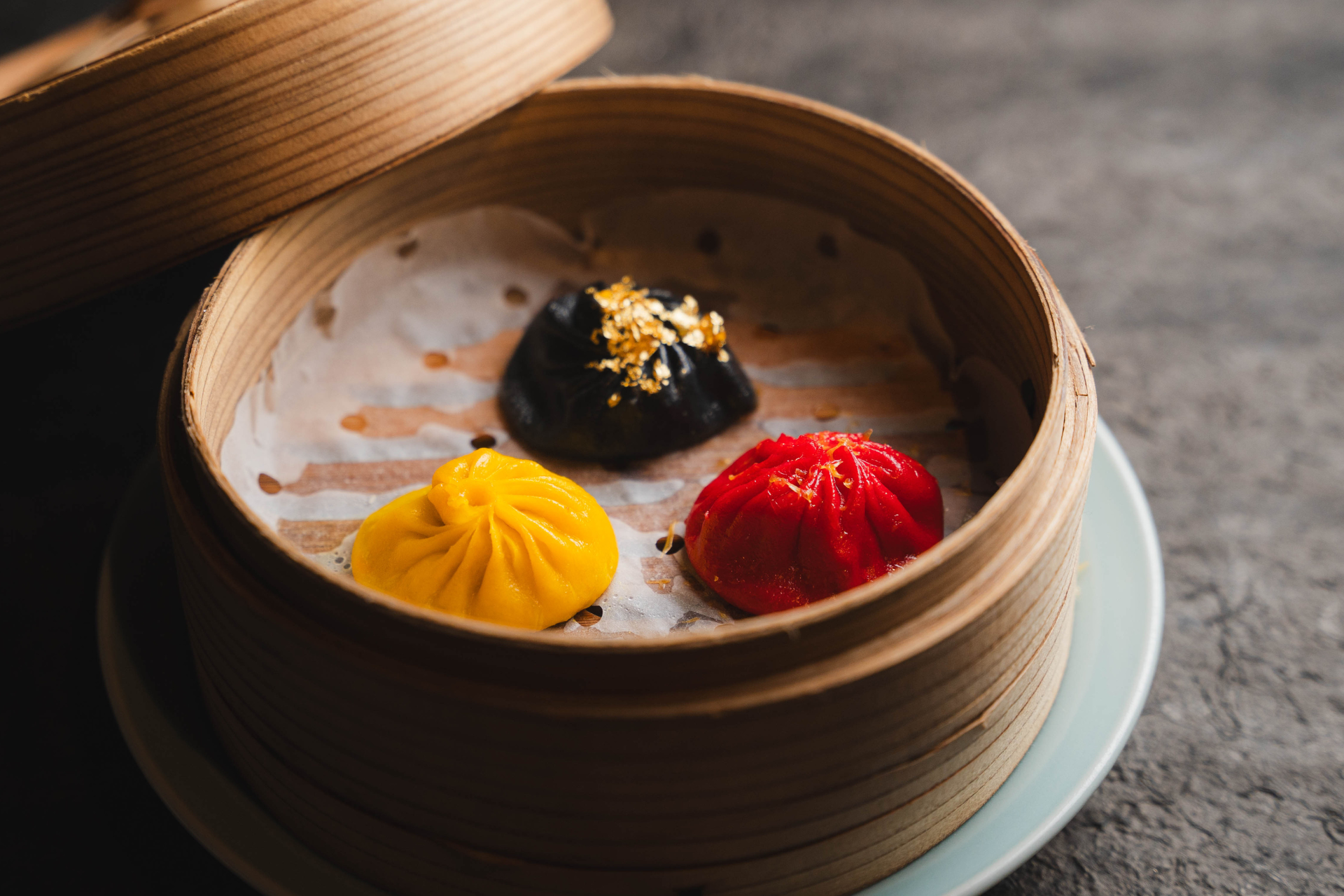 「自家製小籠包」は竹の蒸籠で提供。脂の甘みが秀逸な岩中豚の肩ロースを使った餡と、白湯と鶏ガラを合わせた濃厚スープうま味が口の中で広がります。季節ごとに種類が変わり、多彩な味わいを楽しめるのも魅力。