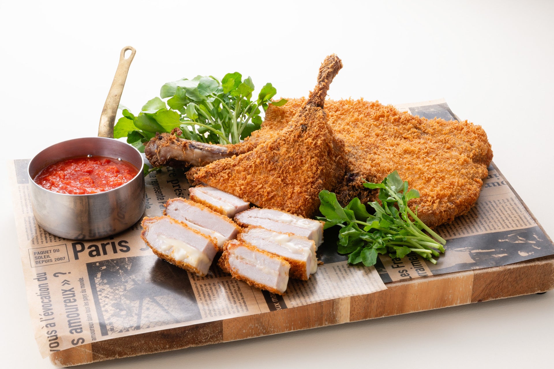 京都ぽーくのチーズハムカツ/小海老とクリームチーズのキッシュ/鶏モモ肉のグリル バジル風味/マグロのカルパッチョ/白身魚のポワレ 柚子風味のバターソース など