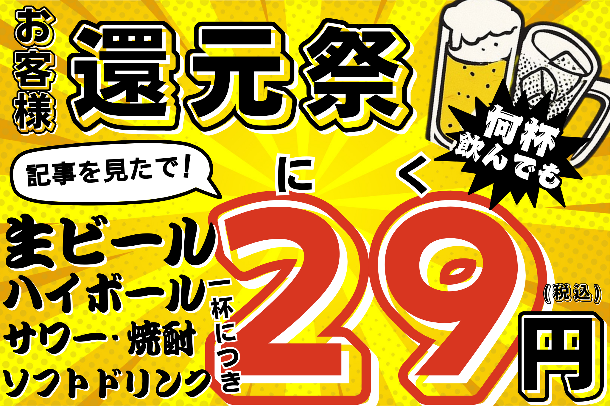 価格:29円(税込)/生ビールを含む対象のドリンク
