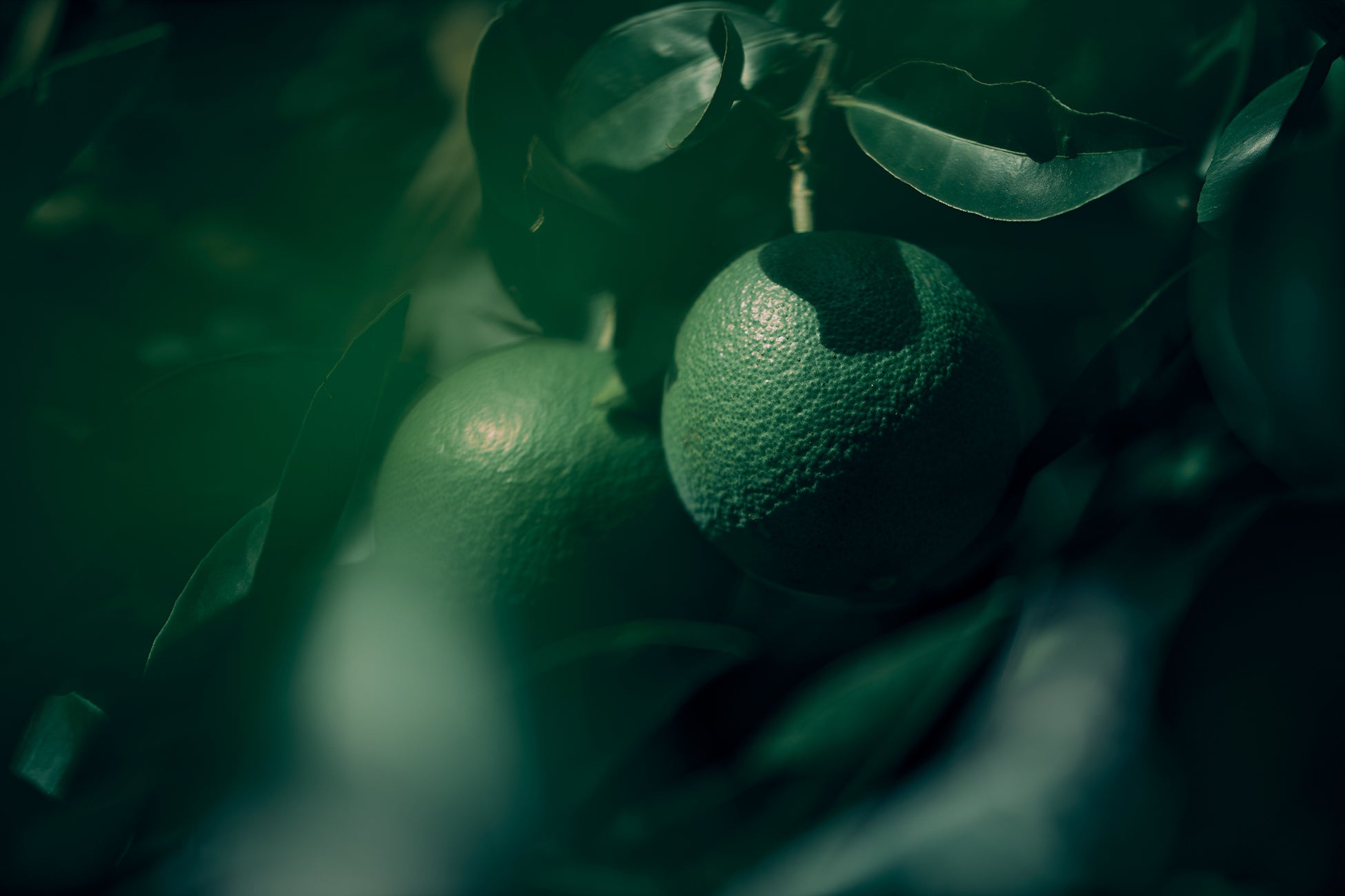 ラベルの端には、青々とした果皮がうっすらと橙色へ変化していく様子を繊細にレイアウトしました。
