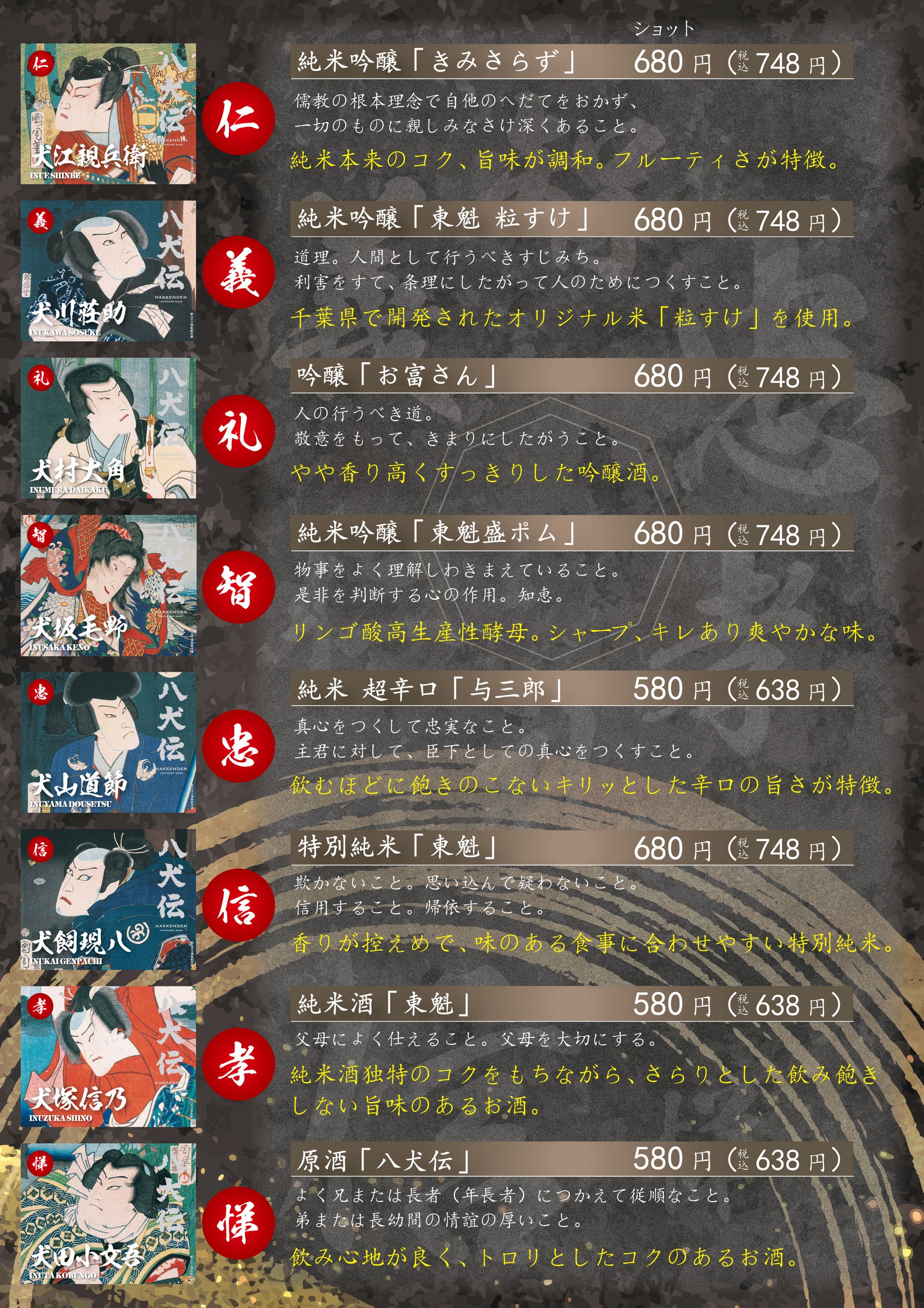 私たちは、「八剣伝」という屋号を持つ者として、いつかこの物語に触れる企画を行いたいと考えていました。今回、ヤマトサカナオリジナルラベルの「八犬伝」という、味もラベルも一級品の日本酒に出会えたことは、まさに運命でした。 自社開発ではなく、あえて「本場の本物」をセレクトし、私たちの得意とする「焼鳥」と合わせることで、お客様に新しい発見と物語のある酒席を提供したい。そんな想いで、この冬、八剣伝直営店に千葉の風を吹かせます。