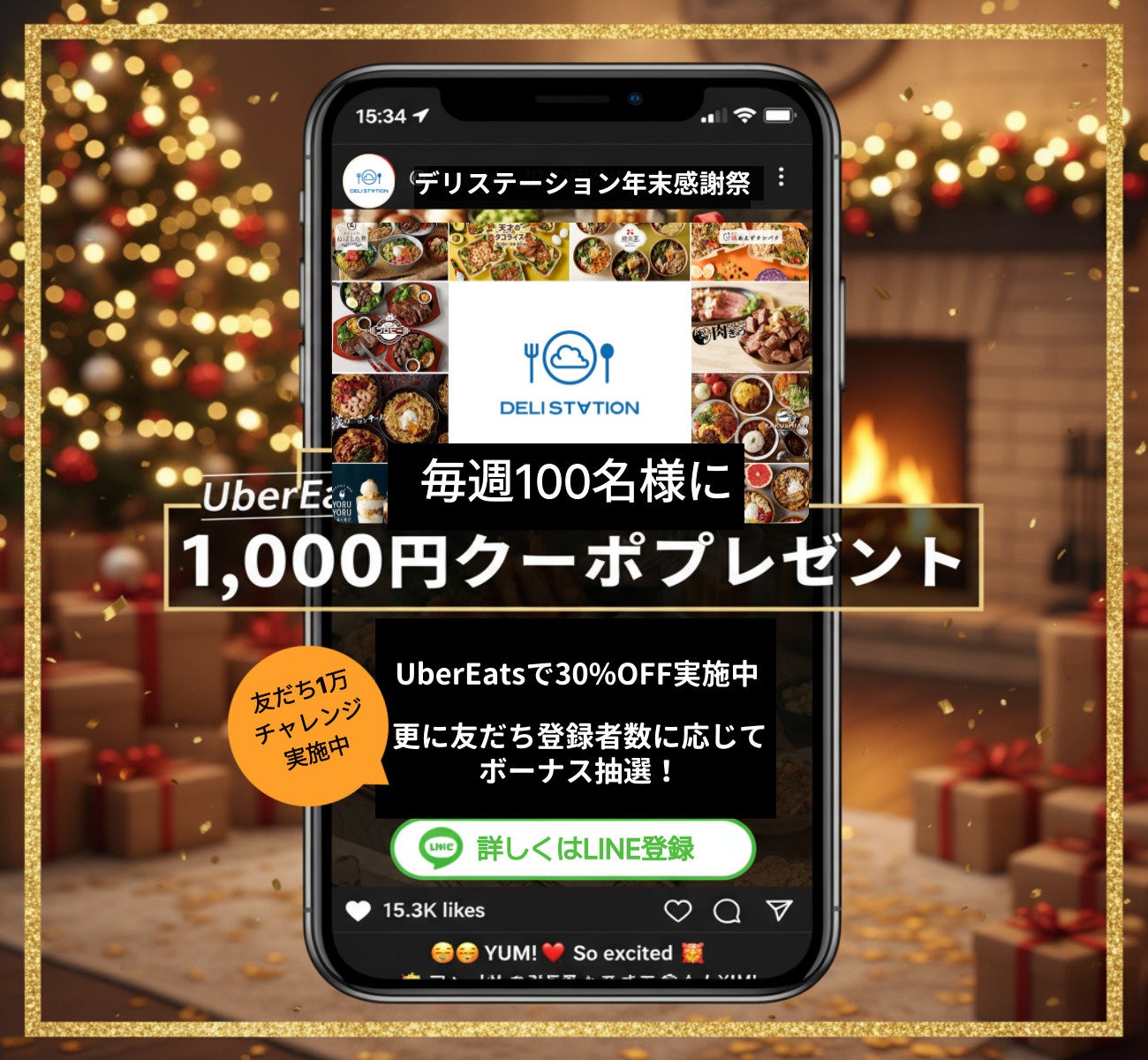 デリステーション公式LINEアカウントにて、Uber Eats 1,000円クーポンが毎週100名様に当たる抽選会を実施します。