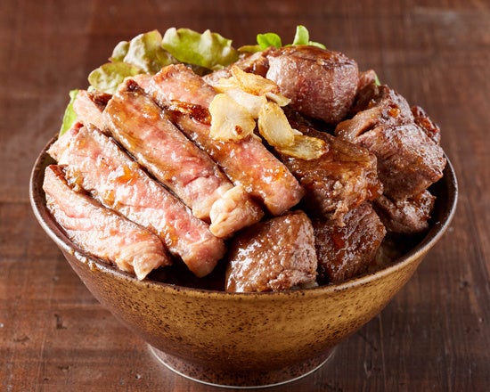【ライス増量】サーロイン&カットステーキの相盛りステーキ丼(200g)