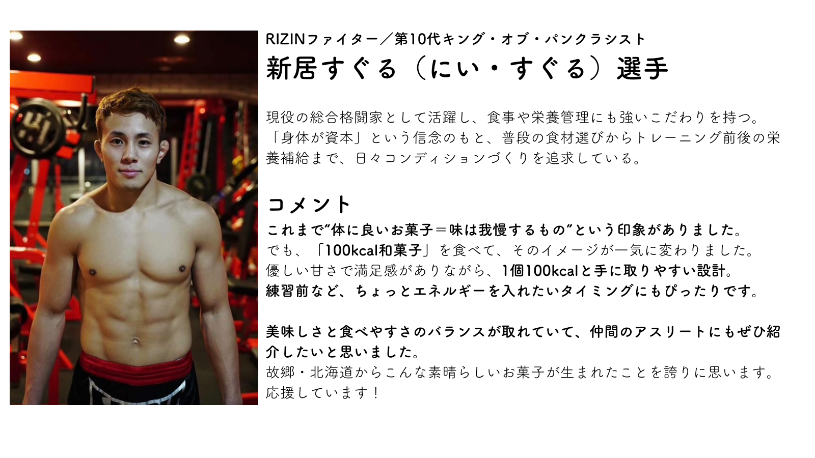 “アスリートが手に取りやすい100kcalの和菓子がほしい”