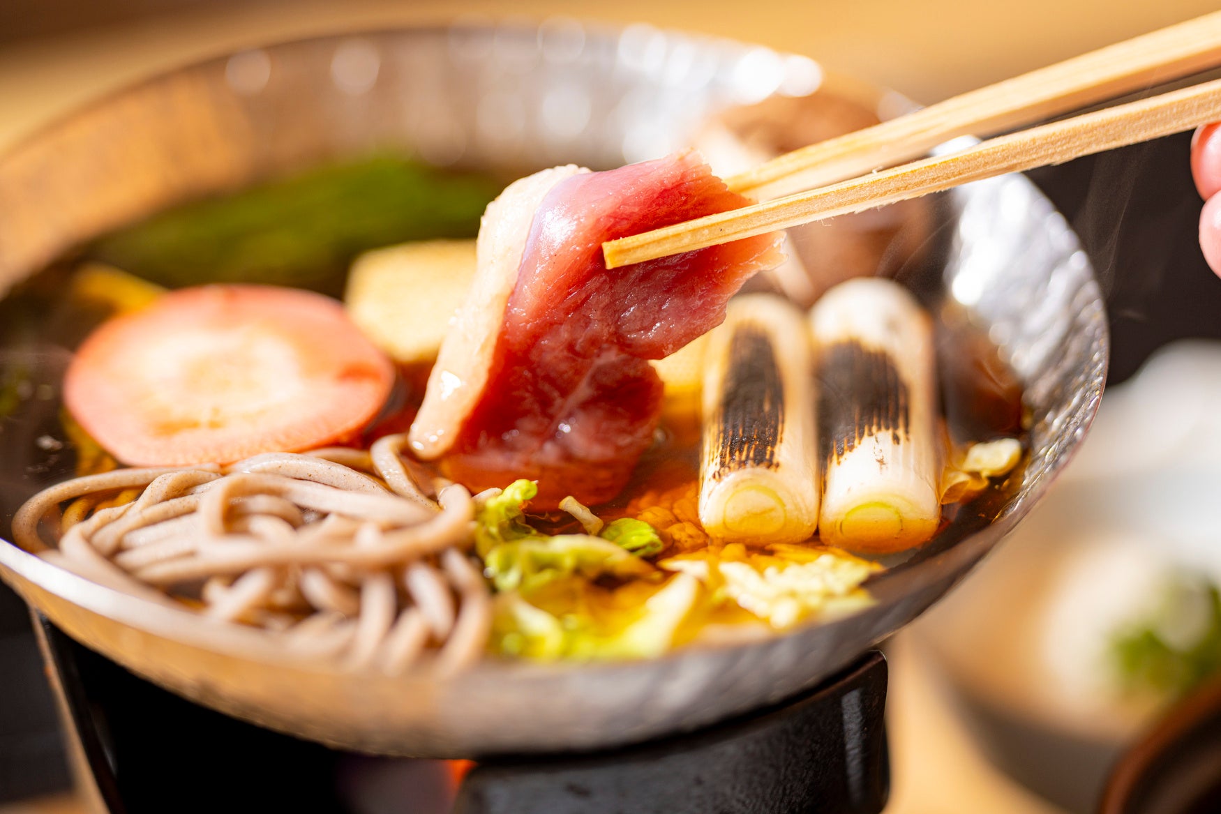 鴨ロースの旨みを上品な割り下で引き立て、旬の冬野菜とともに。