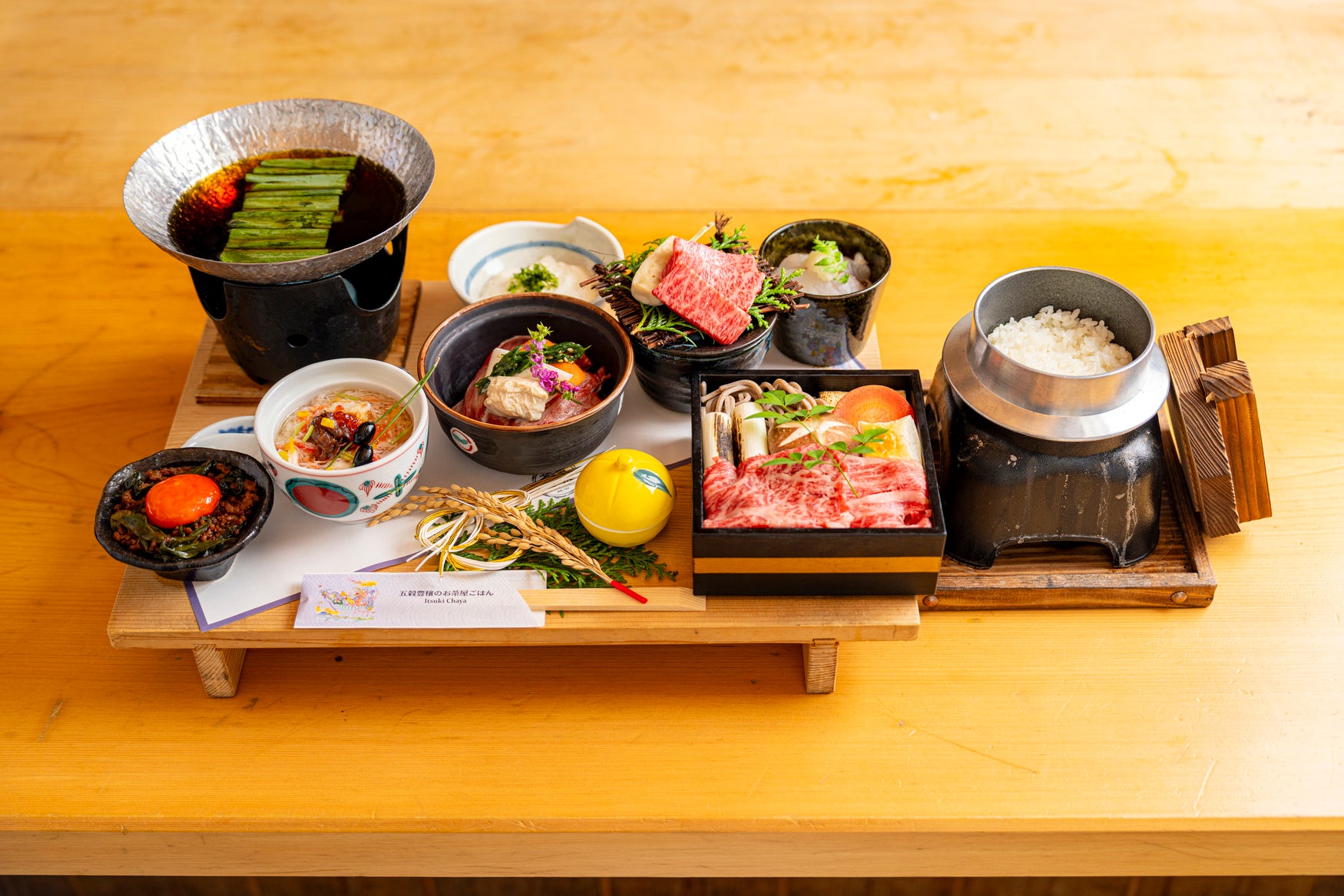 冬の季節、京都の食材をふんだんに使用した、五木茶屋 先斗町店ならではの御膳をご用意いたしました。厳選された和牛と、冬の彩り豊かな食材を特別な空間でご堪能ください。