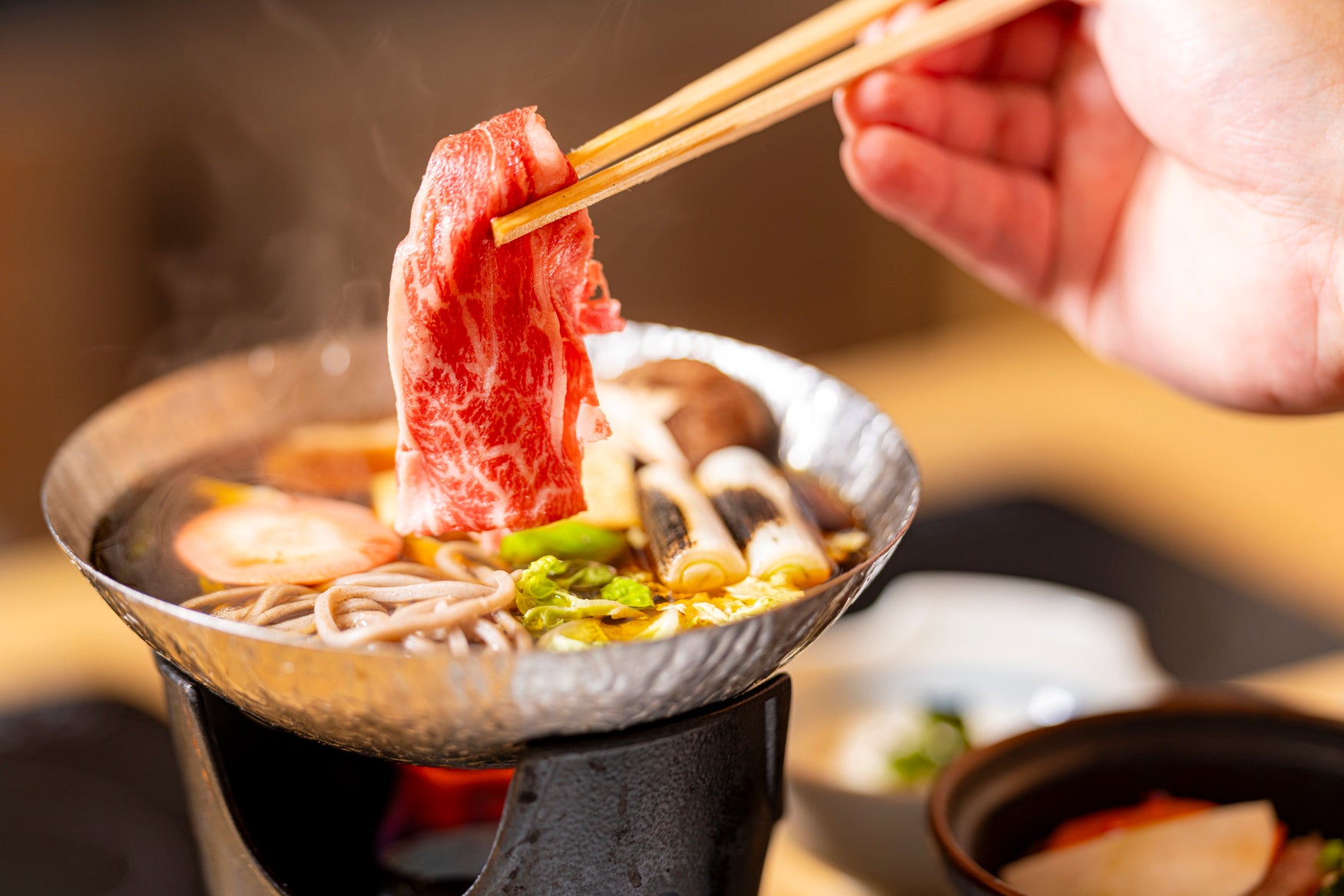割下が染み込んだ和牛と冬野菜が織りなす、奥行きのある味わいが特徴です。
