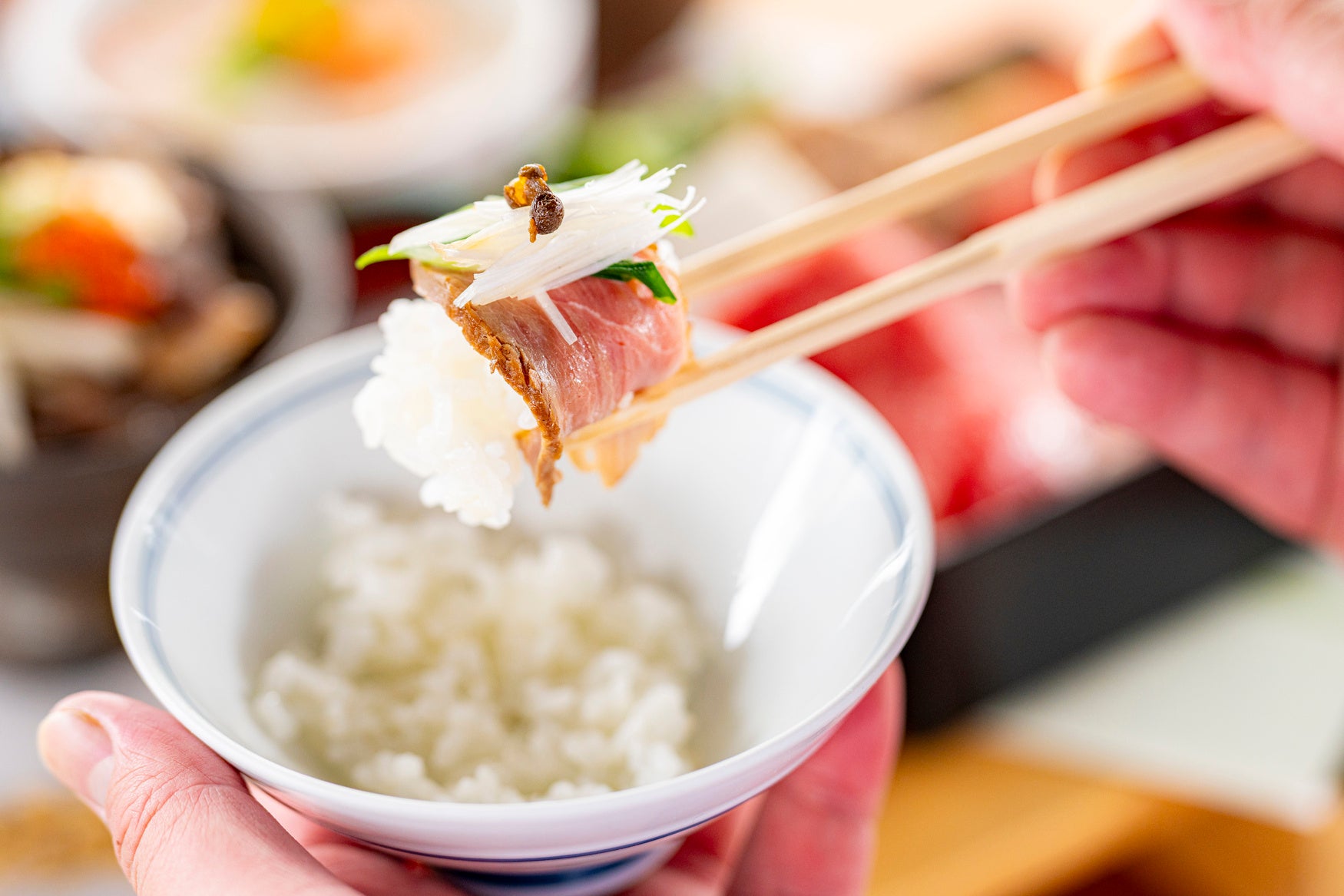 霜降りの脂がとろけるように広がり、黒毛和牛ならではの上品な甘みとコクをお楽しみいただけます。