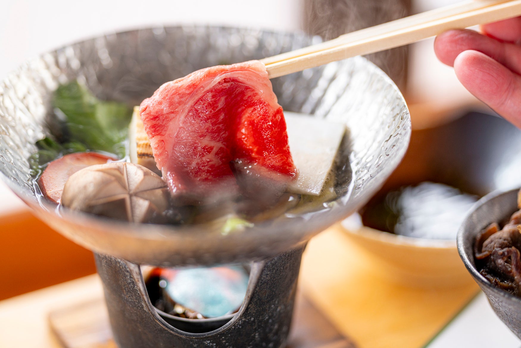お出汁の旨みと食材本来の味わいを最大限に引き出すため、厳選した黒毛和牛を“しゃぶしゃぶ”でご提供しております。