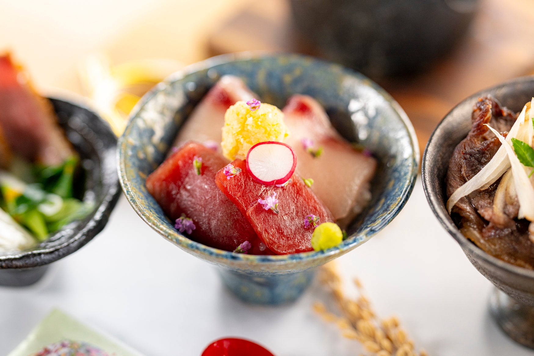 各丼には料理長が趣向を凝らした調理法と味付けが施され、食べ比べることで味覚の多彩さを存分に体験できます。