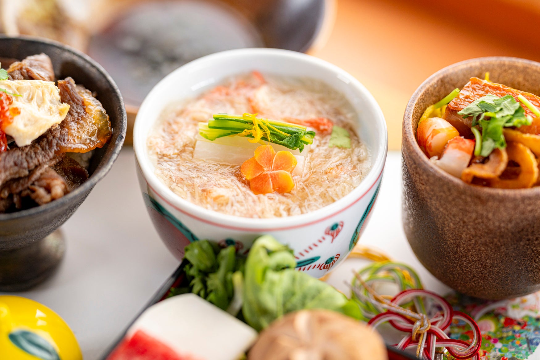 新鮮な海の幸やお肉が持つ本来の旨味を引き出し、それぞれの丼に趣向を凝らして仕立てております。五種類それぞれの味わいをお召し上がりいただくことで、冬の味覚を五感で感じていただけます。