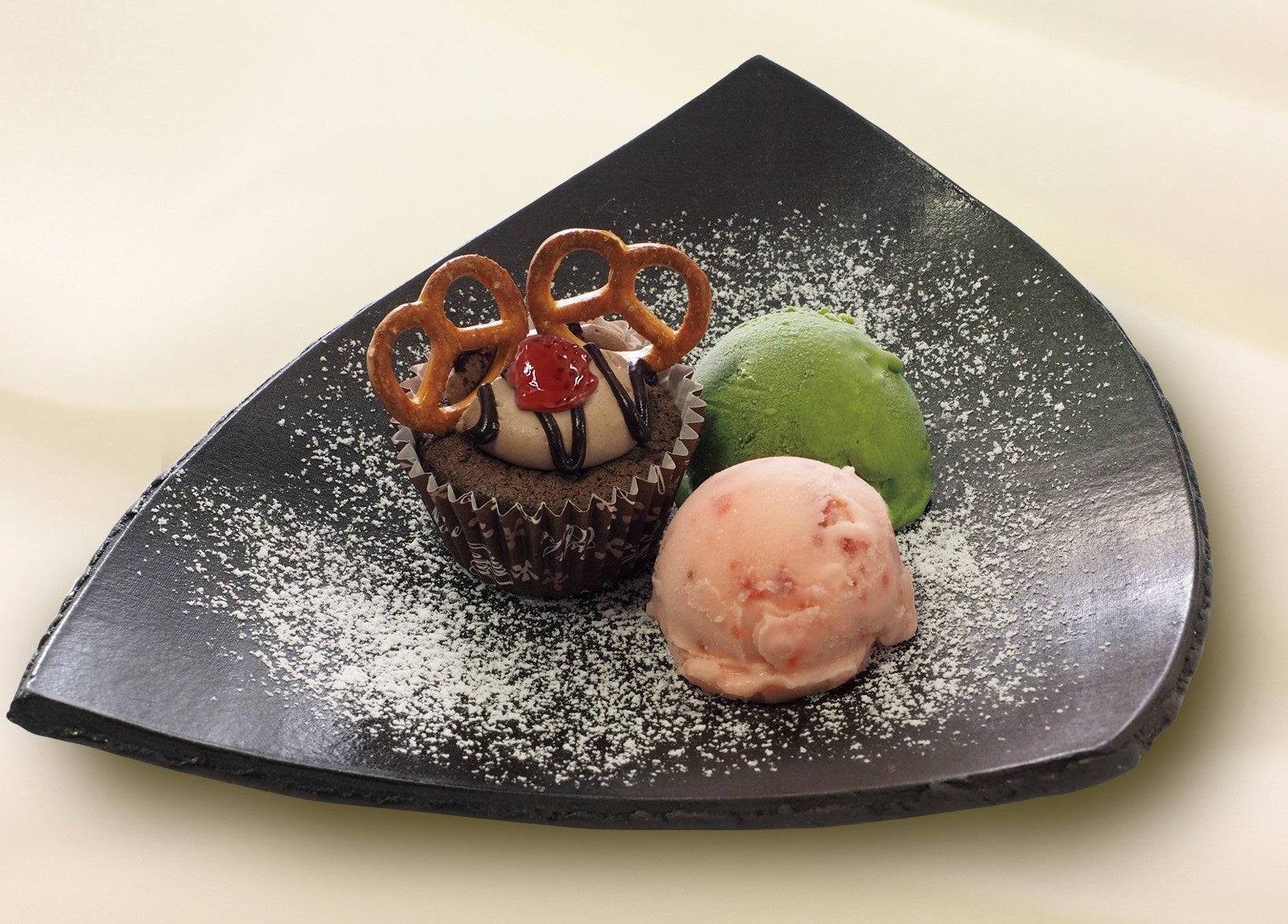 「トナカイのチョコケーキ」は、チョコカップケーキにプレッツェルとストロベリーソースをデコレーションし、トナカイに見立てた遊び心あふれるスイーツです。クリスマスカラーのストロベリーソルベと抹茶アイスを添えたバージョンもご用意しており、これらのスイーツは、お料理とご一緒にご注文いただくと110円お得にお召し上がりいただけます。クリスマスシーズンの心躍るひととき、彩り豊かに仕立てた限定メニューをお楽しみいただき、心温まる時間を過ごしていただければ幸いです。