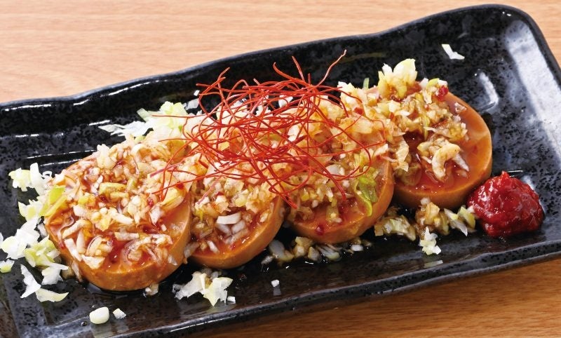 「旨辛あん肝~葱まみれ~」は、あん肝にピリッとした辛みと葱の香味を合わせ、後を引く味わいに仕上げました。