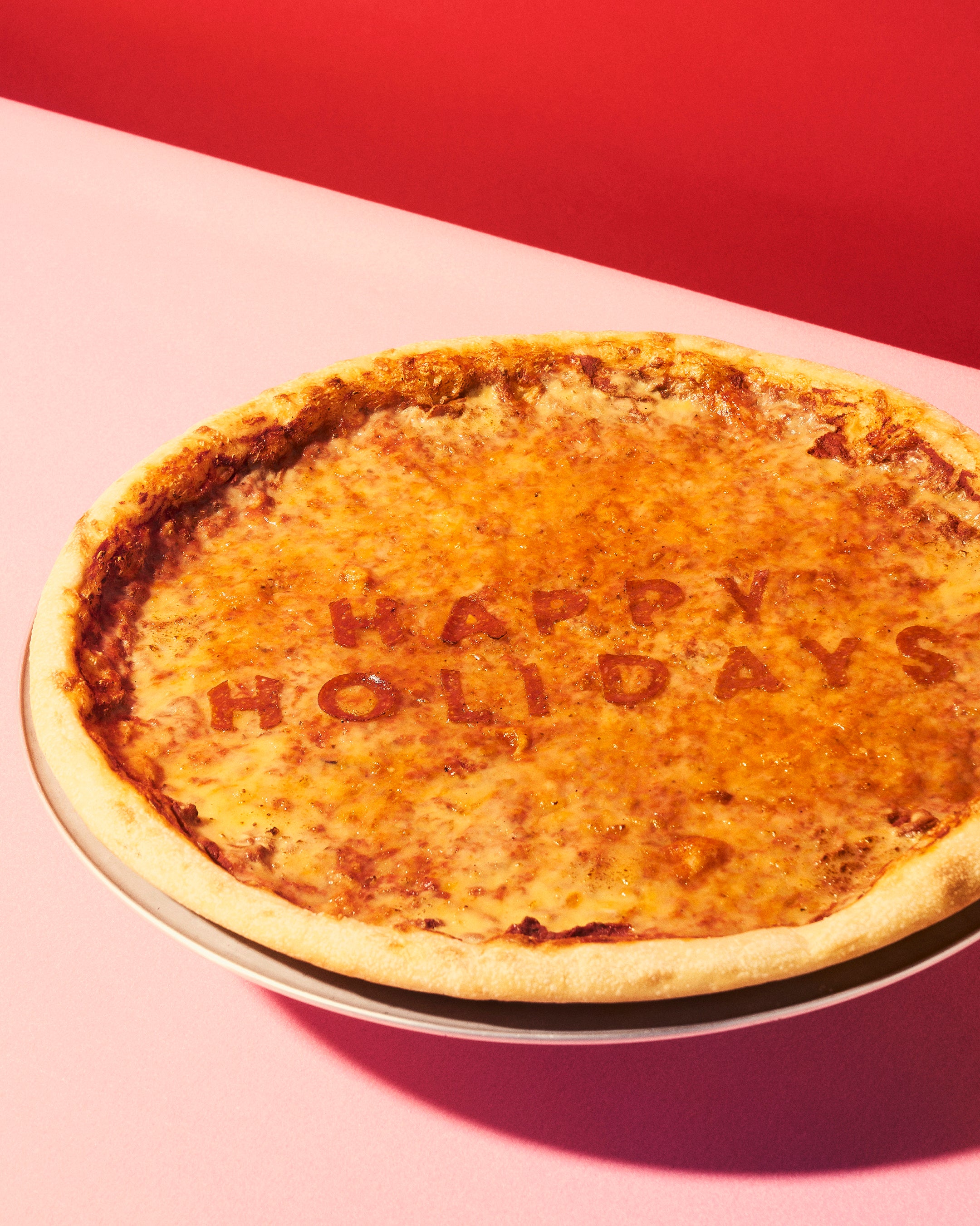 ピザには、ペパロニで“HAPPY HOLIDAYS”や”HAPPY BIRTHDAY”など、お好きなメッセージを入れることができます。