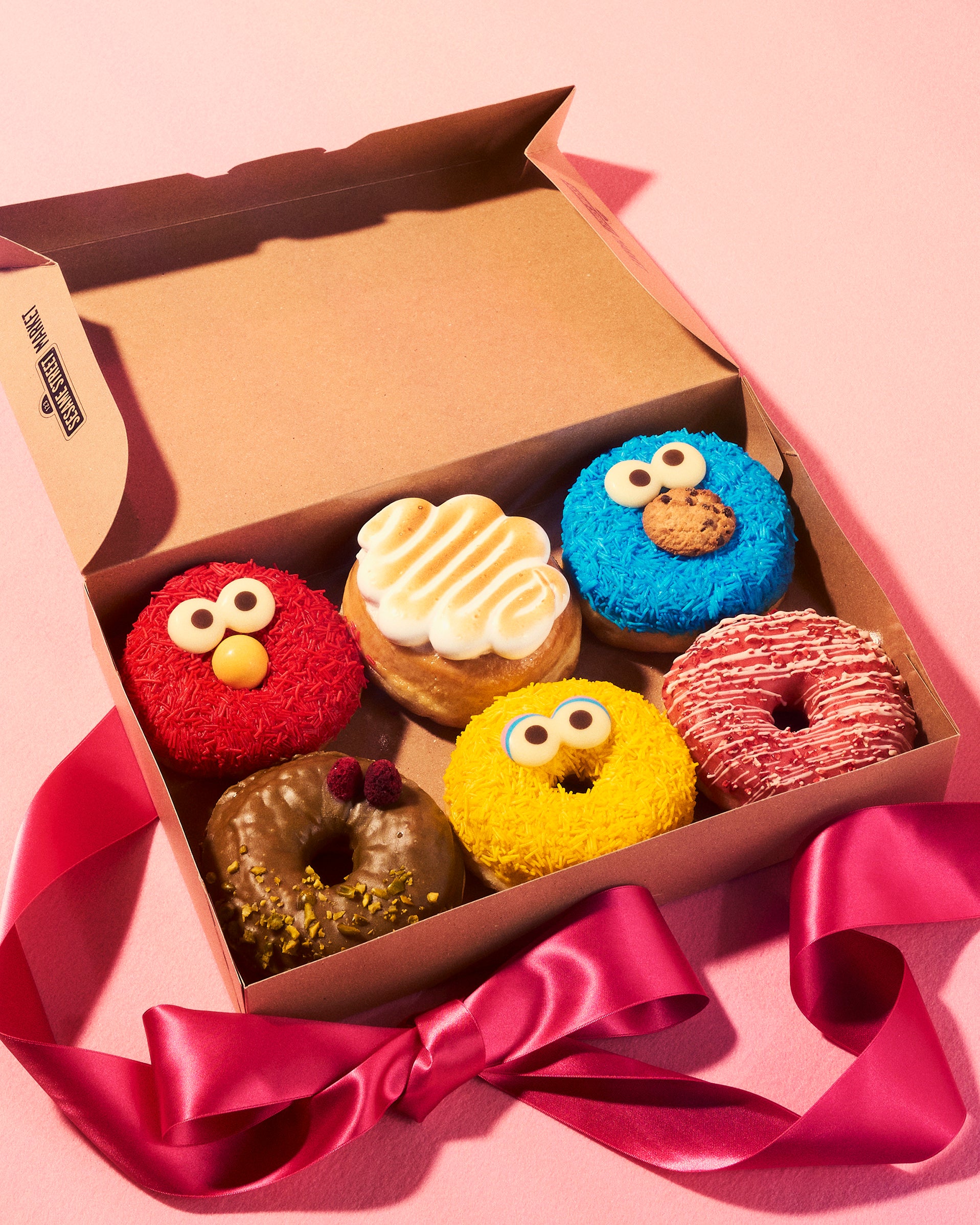 エルモ、クッキーモンスター、ビッグバードのキャラクタードーナツを詰め合わせた〈3個入りボックス〉と、3個入りボックスの内容に加え、ホリデー限定のブロンテピスタチオドーナツ、ホワイトショコラベリードーナツ、レモンメレンゲドーナツの3種を詰め合わせた〈6個入りボックス〉の2種類のお得なドーナツボックスを、ホリデー限定でご用意しました。