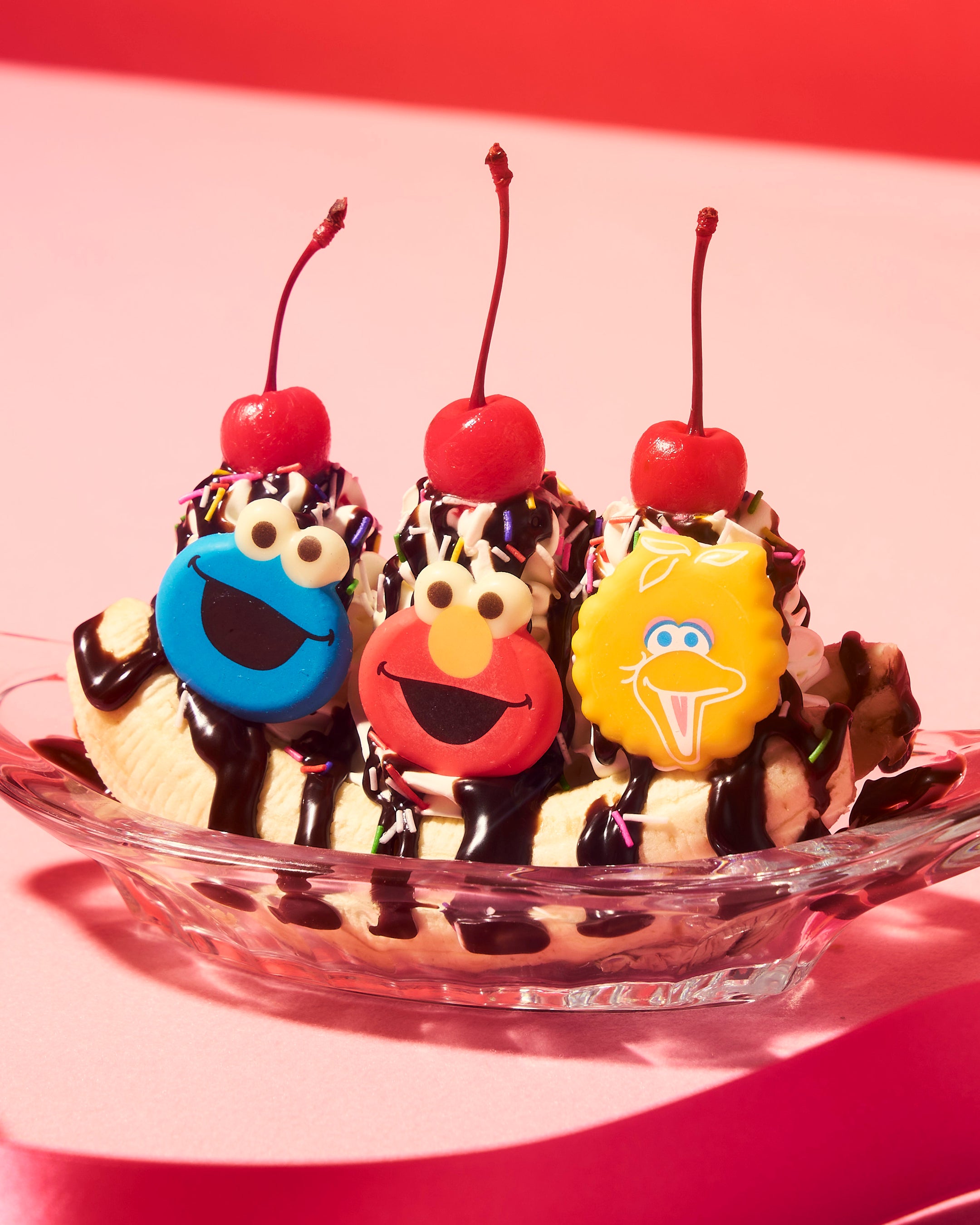 (左より時計回り:クッキーモンスター、ビッグバード、エルモ)
