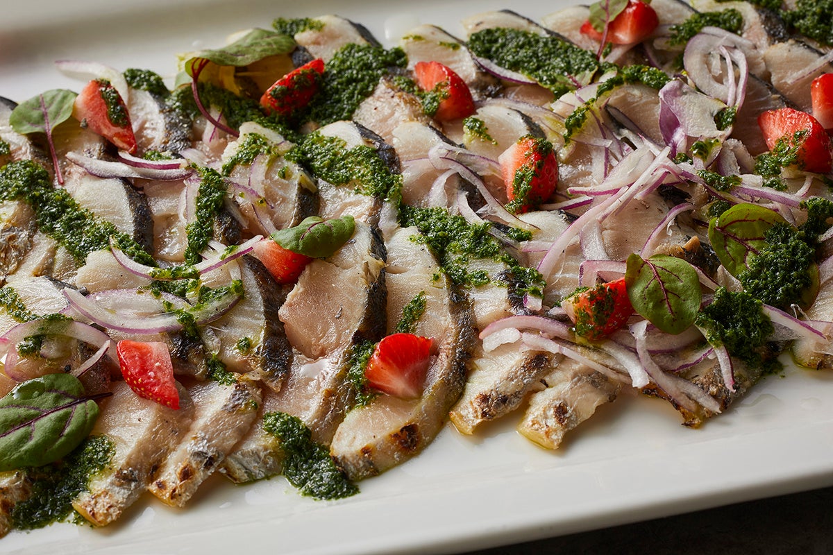 旬の寒さわらを香ばしく炙り、いちごとサルサヴェルデで仕上げた「寒さわら炙りスモーク、いちご、サルサヴェルデ」や、軽やかな酸味が広がる「アンコウのエスカベーシュ」などこの時期ならではのメニューの他、やさしい旨味が染み渡る「サムゲタン」や「牛肉の赤ワイン煮込み」、「茄子とミートソースのムサカ風グラタン」といった寒い日にこそ楽しみたい各国の温かい料理も豊富にご用意いたしました。