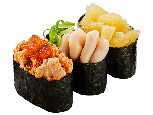 クリーミーなあん肝、とろっとした食感の白子、コリコリした食感の数の子が一皿で味わえます。