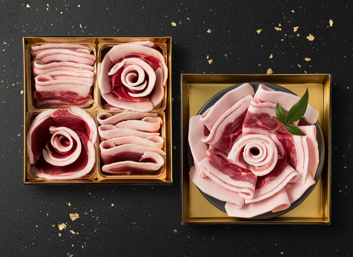 下段には、濃厚な旨味の「バラ」「モモ」「カタ」「肩ロース」を敷き詰めました 。蓋を開けた瞬間の驚きと感動は、大切な方への冬の贈り物(お歳暮)や、ご家族が集まるお正月のおもてなしに最適です