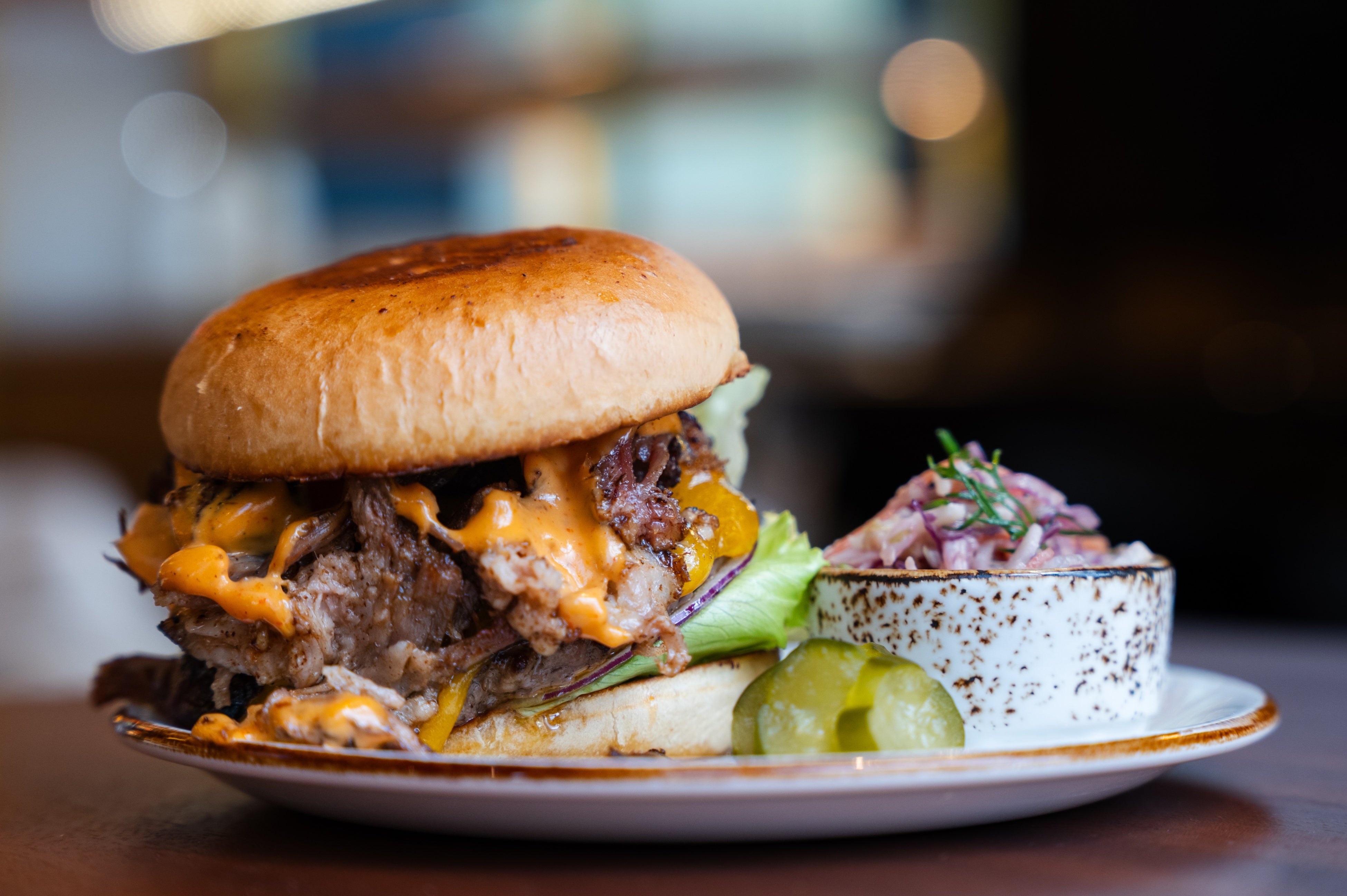 シェフ Timが愛するメキシカンとアメリカンBBQを融合させた12月限定のバーガー。BBQプルドポークにメキシコ料理カルニータス(豚肉をじっくり煮込んで仕上げる伝統的な調理法)の技法を取り入れ、ほろほろの柔らかさに仕上げました。甘くジューシーなプルドポークと、ビーフパテを組み合わせたボリューミーな一品。BBQの定番であるピクルス、コールスローがスモークチェダーとスパイシーなソースのパンチが効いた味わいを一層引き立てます。