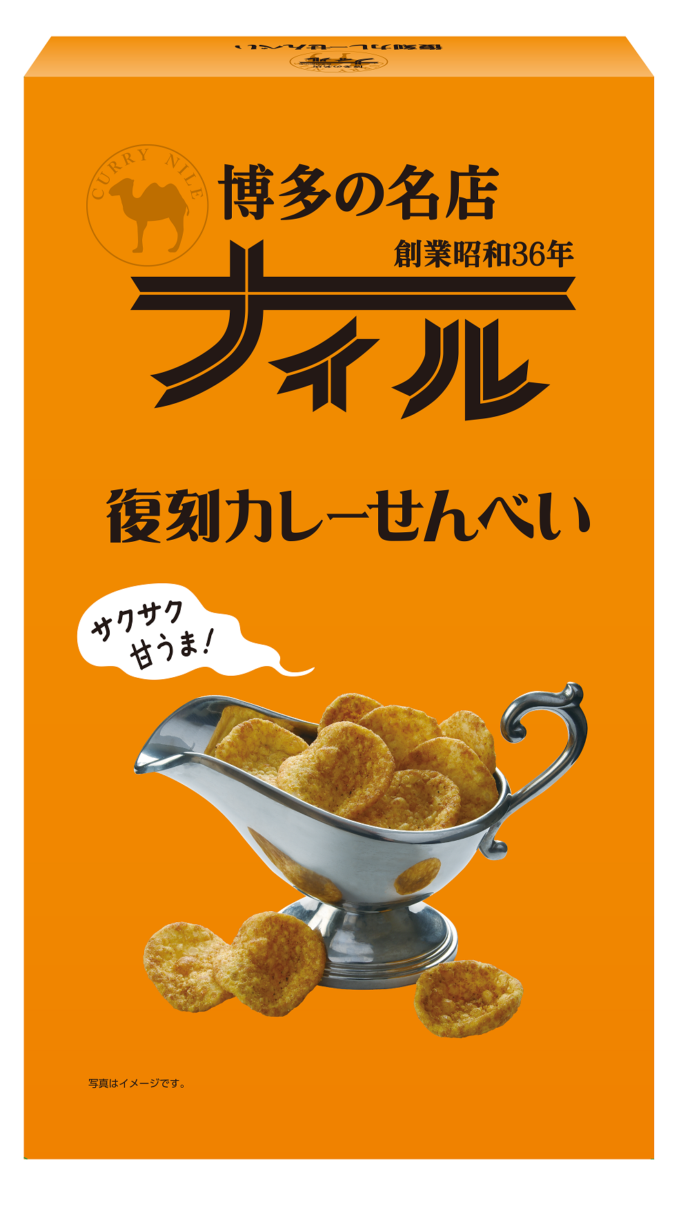 このたび発売する「博多の名店ナイル」監修のカレーせんべいは、創業当時の看板メニューを再現した優しい甘さが広がる古き良き昭和の味わいの「復刻カレー」と、長時間煮込んだ深いコクと旨味が特長のピリッと辛い「黒カレー」の味わいをそれぞれ再現したものです。「復刻カレーせんべい」はサクサク食感で甘うまい、「黒カレーせんべい」はしっとり食感でコクうまい2つの異なる味わいをお楽しみいただけます。ご移動のお供や福岡のお土産として、ぜひこの機会にお試しください。