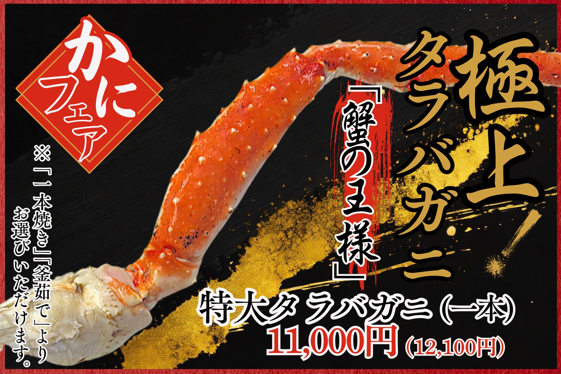 【商品概要】 フェアの目玉として、規格外の迫力を誇る、「蟹の王様」タラバガニを一本焼きや釜茹で