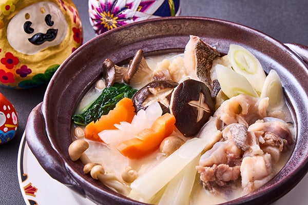 北陸産の鱈とあんこう、定番の野菜を、魚から丁寧に取った出汁スープでじっくり煮込みました。お好みに応じて、中華麺を加えた煮込み麺もお楽しみいただけます。海の幸の旨みと野菜のやさしい甘みが溶け合う、心まで温まる一皿です。